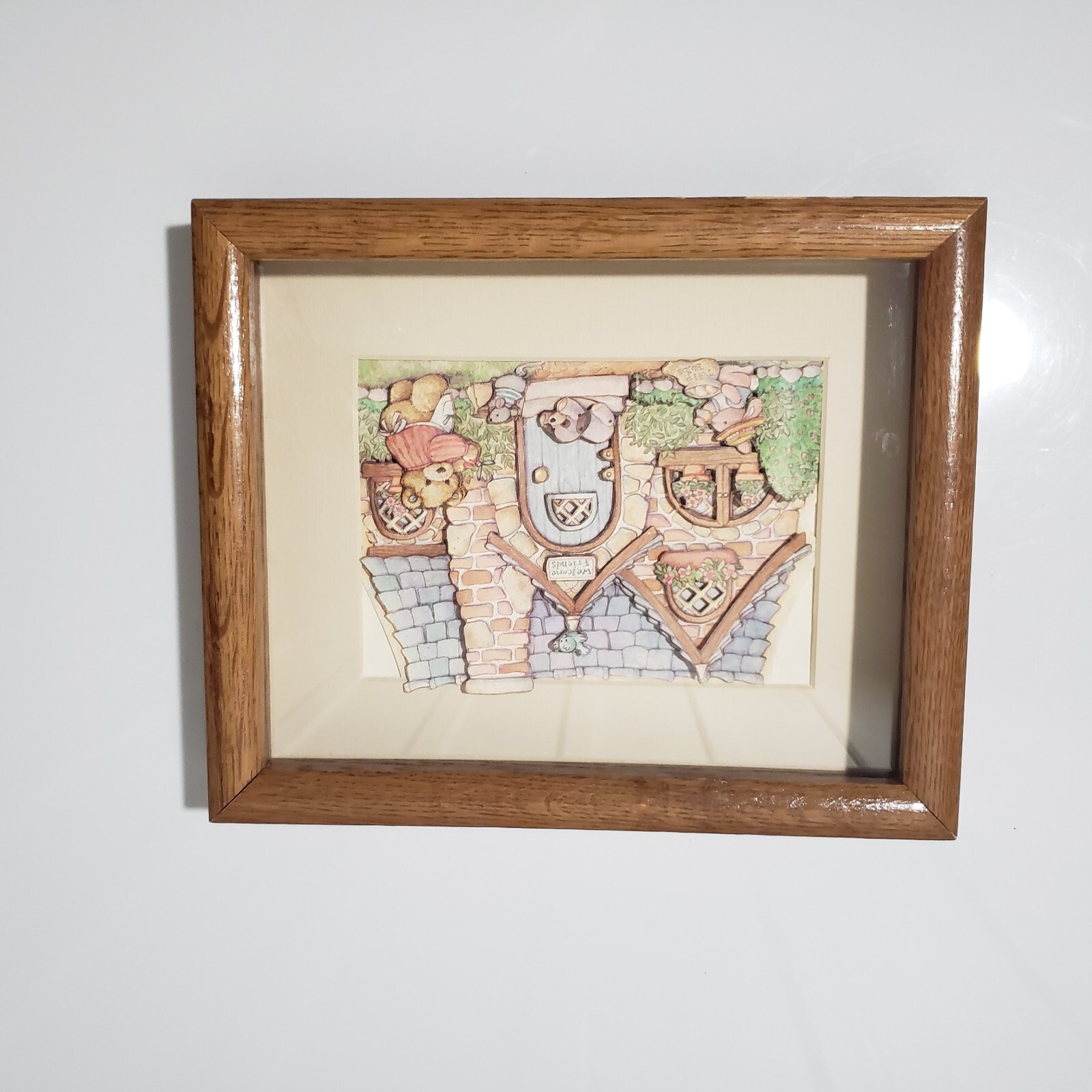 Vtg Framed Matted Art Shadow Box for Child's Bedroom Unisex Bear Cottage