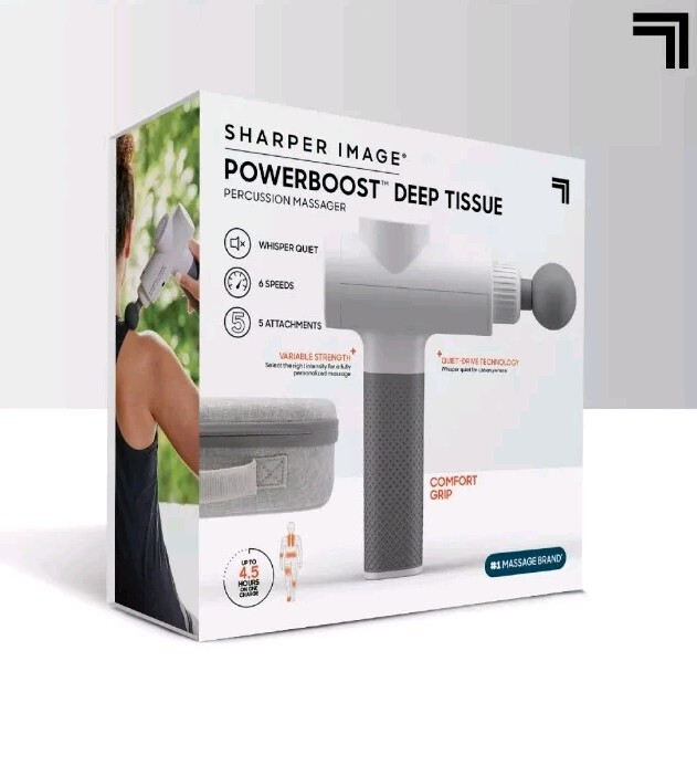 Sharper Image Powerboost Deep Tissue Percussion Massager Full Body Massage Gun