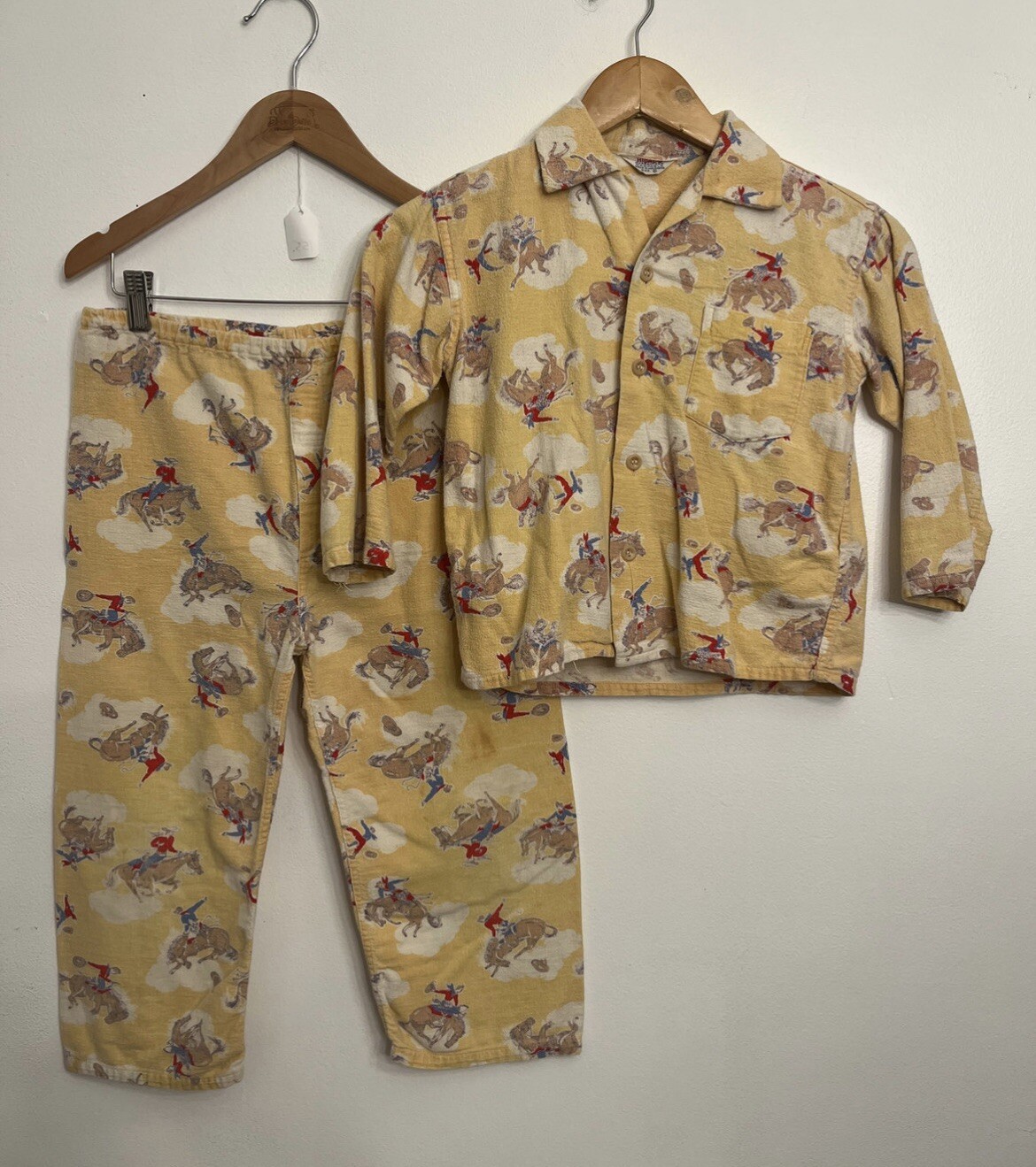 VINTAGE 1950s BUCKING COWBOY FLANNEL PAJAMA SET