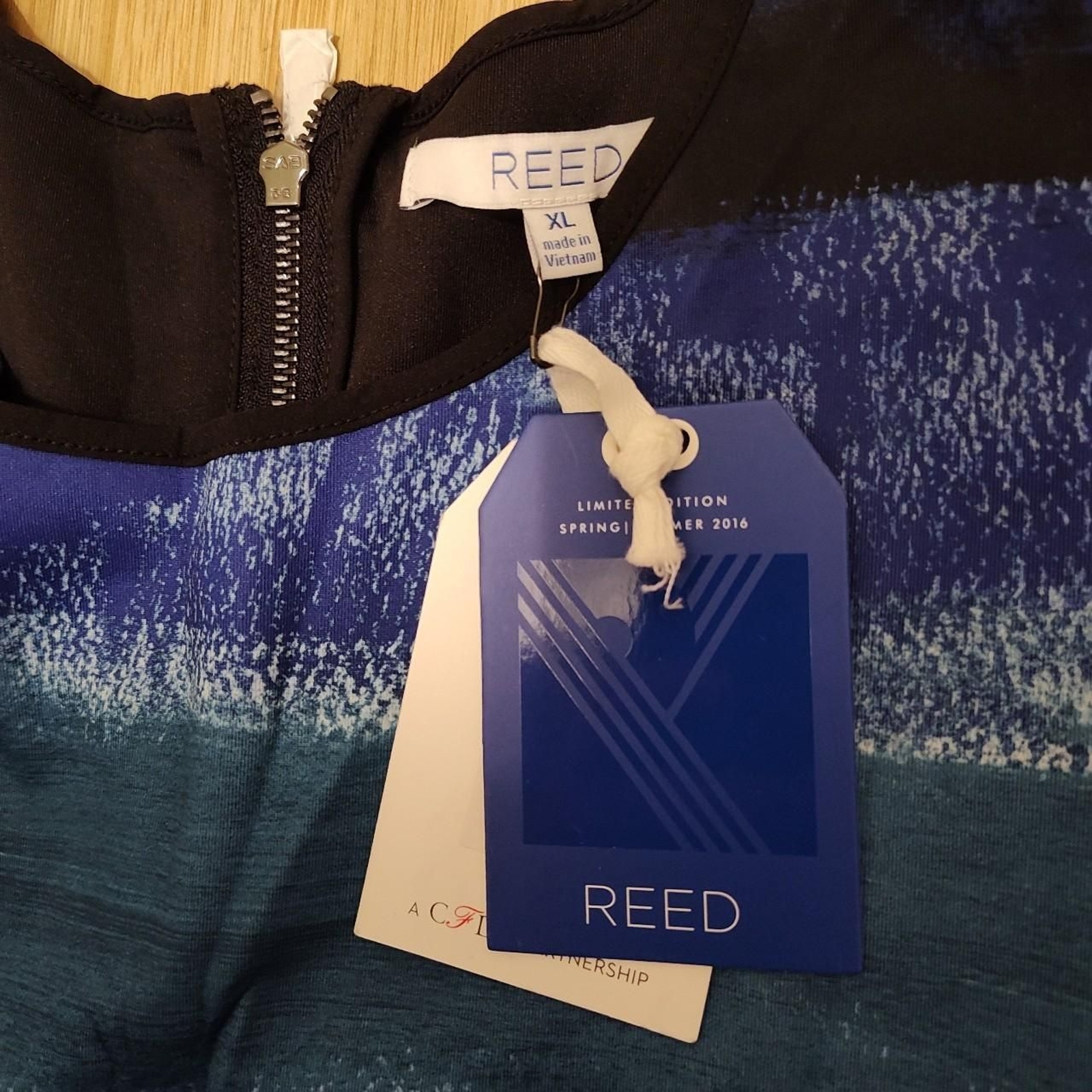как выглядит REED Multicolor Panel Black Back "Scuba" Fabric Dress Stretch Back Zipper XL NWT фото