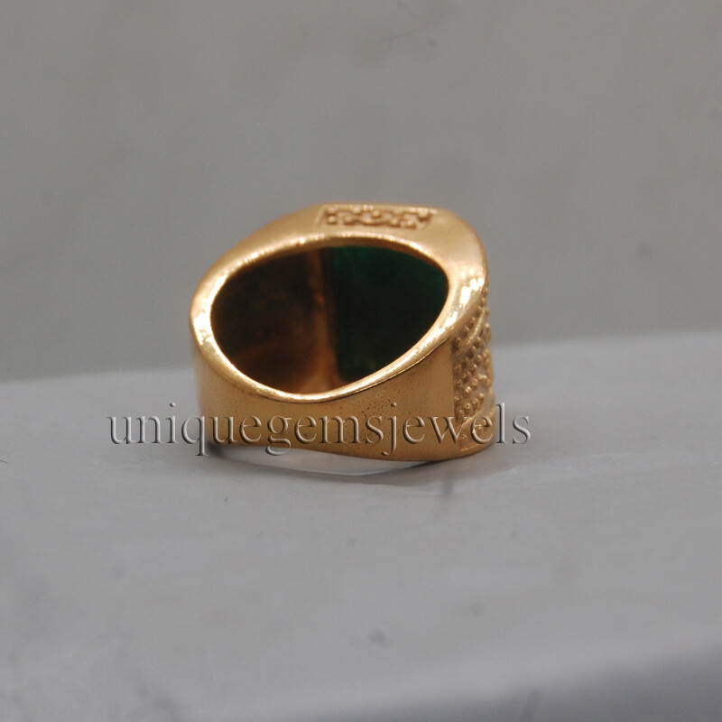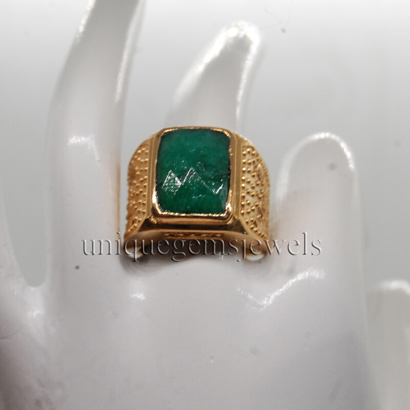 Rose Cut Green Emerald 925 Sterling Silver Yellow Gold Fill Unisex Ring