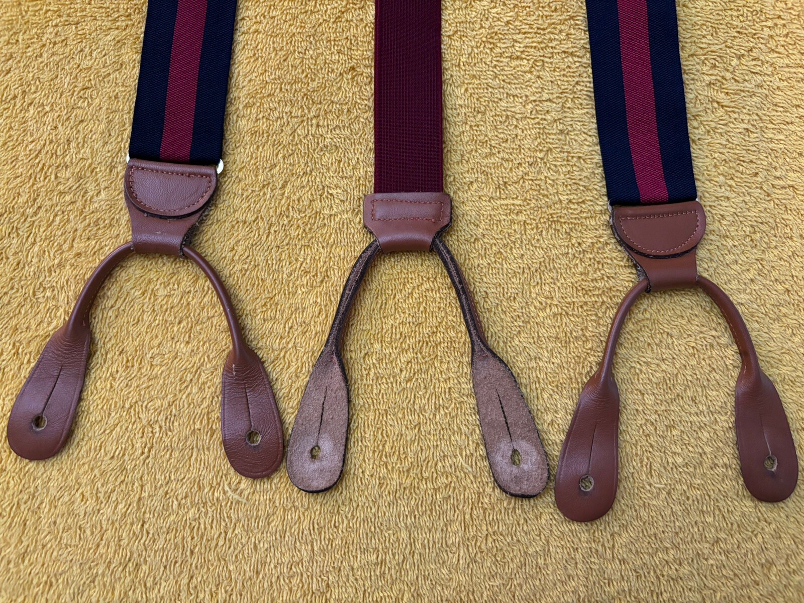 как выглядит Red Navy Stripe Suspenders Made in England for ROYAL NEW YORK Button Ends EUC фото