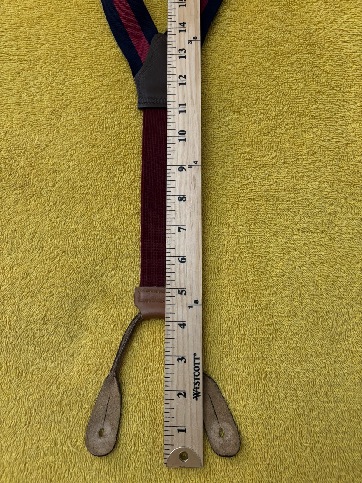 Red Navy Stripe Suspenders Made in England for ROYAL NEW YORK Button Ends EUC