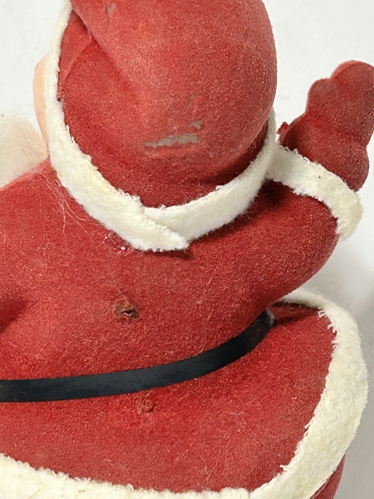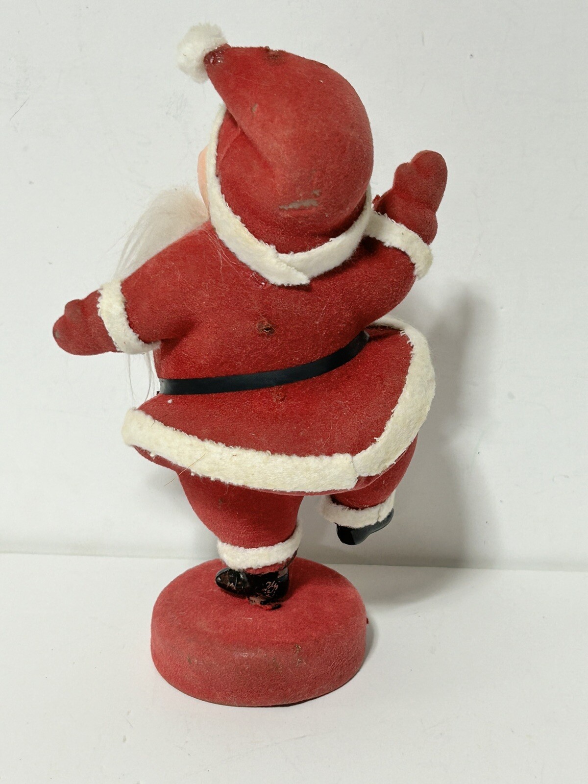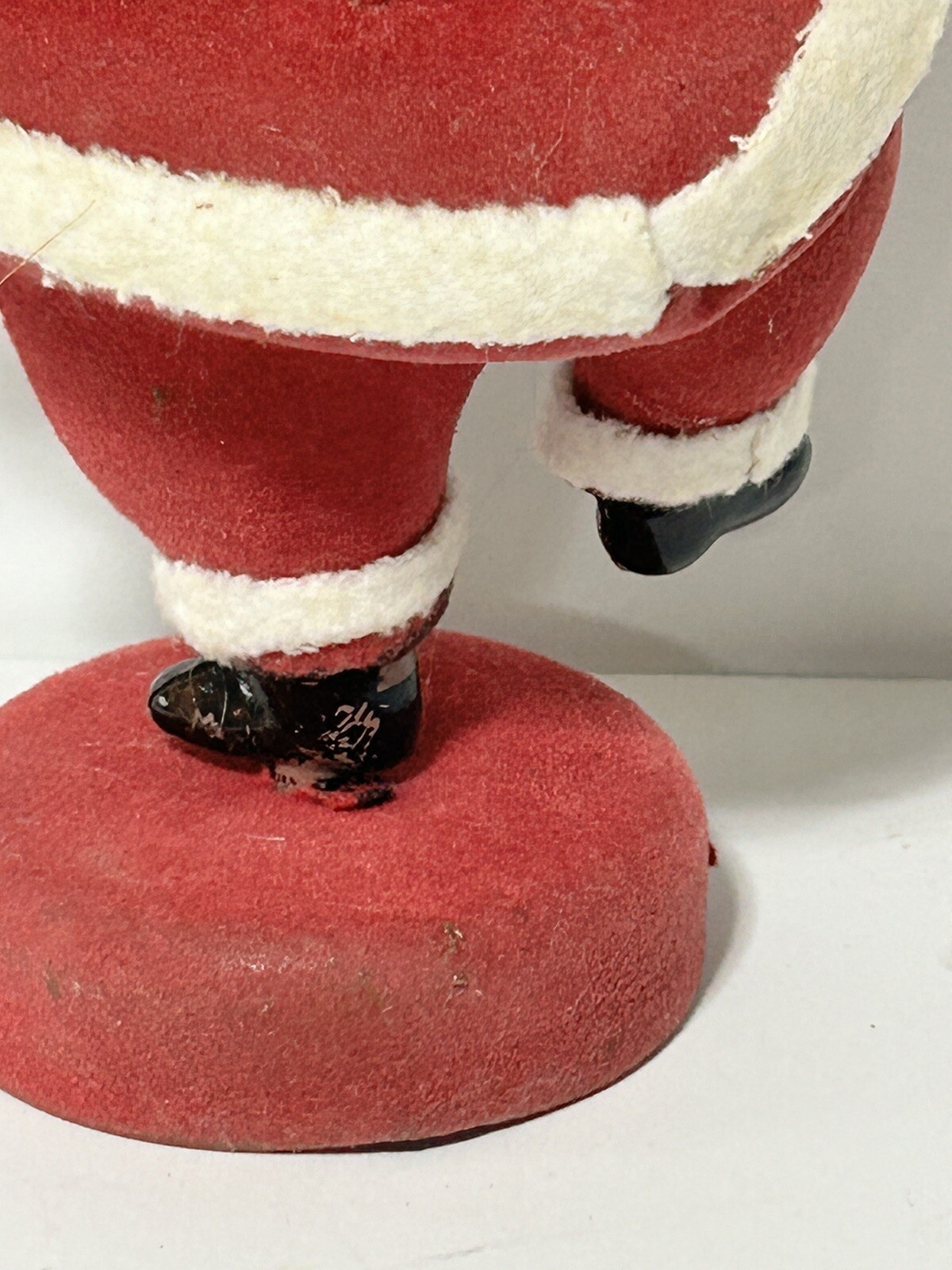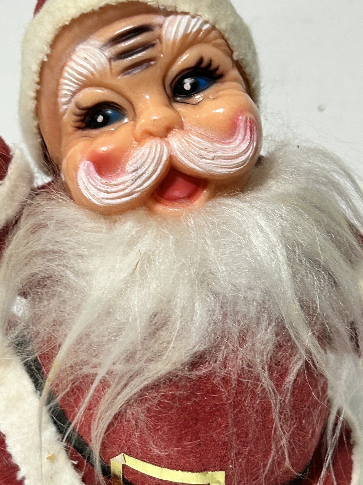 как выглядит Flocked Santa Claus With Soft Fuzzy Beard- Celluloid Figurine- Vintage Christmas фото