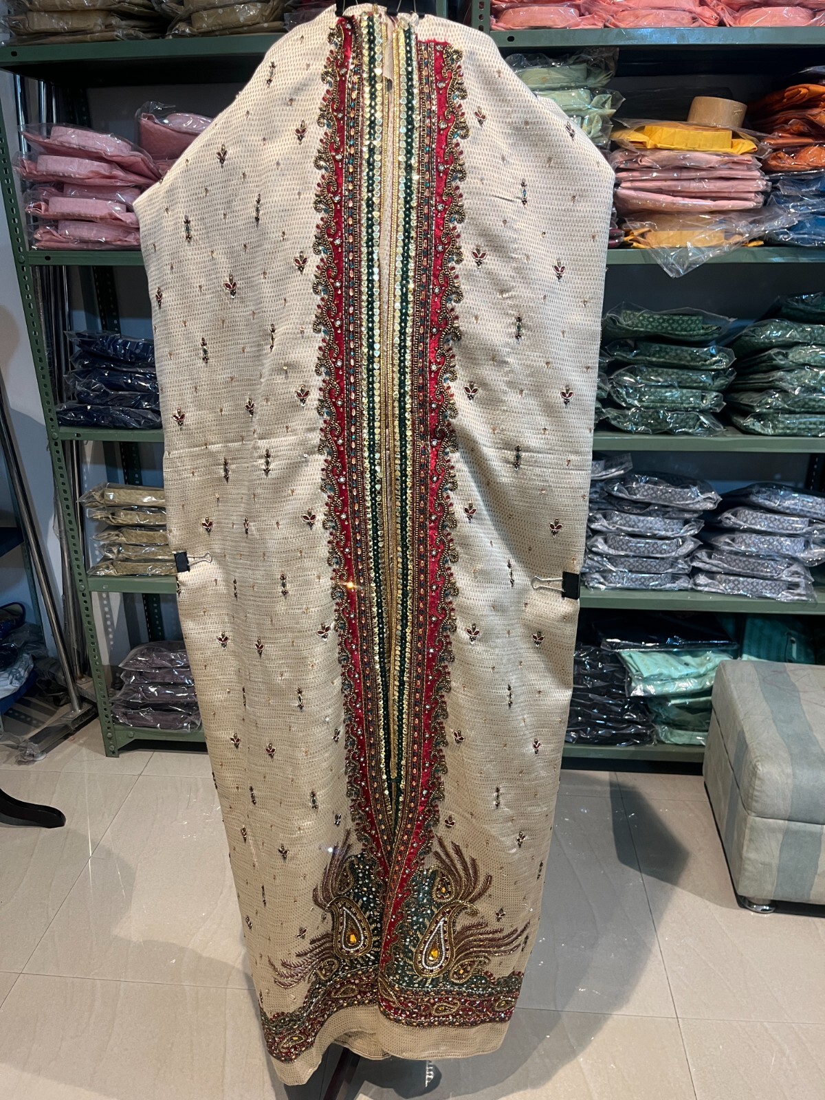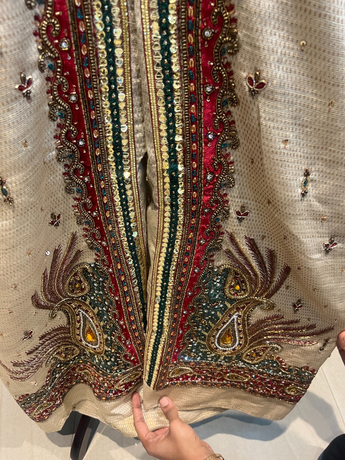 Stitched Beige Sherwani for Men Groom outfit for Wedding material for ref