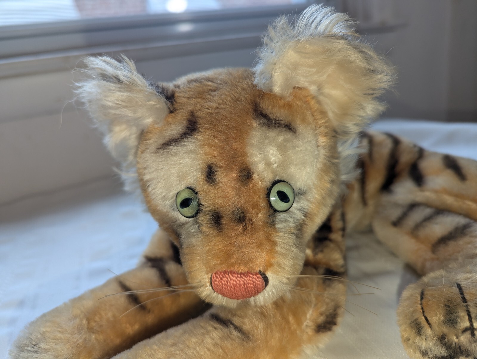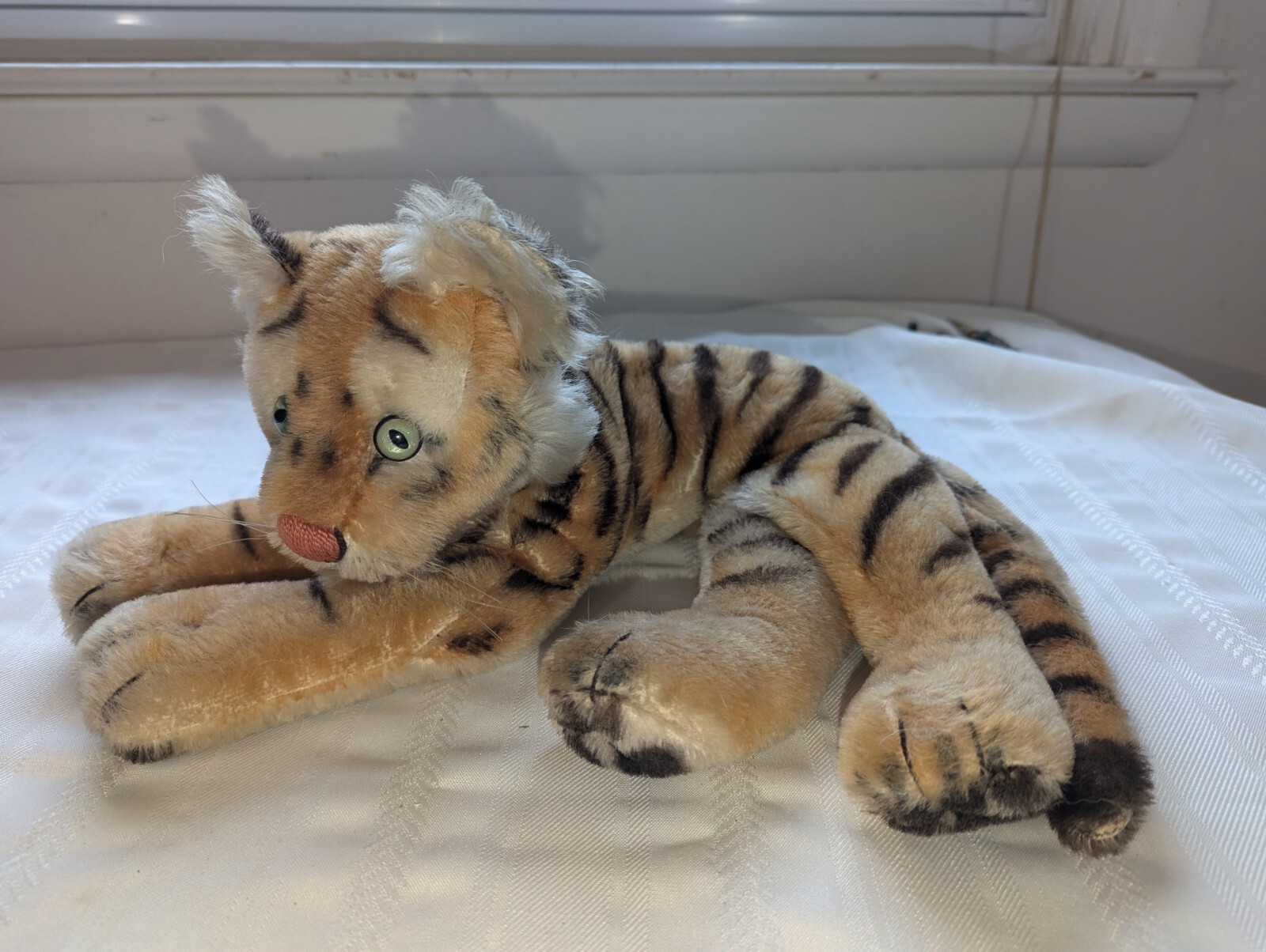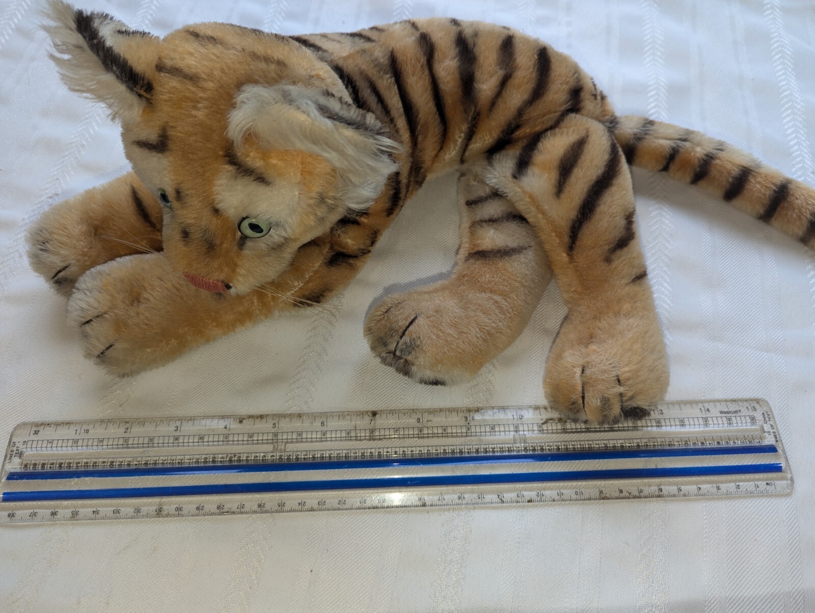 как выглядит Vintage Steiff Tiger Laying Down 14" Long 1950s фото