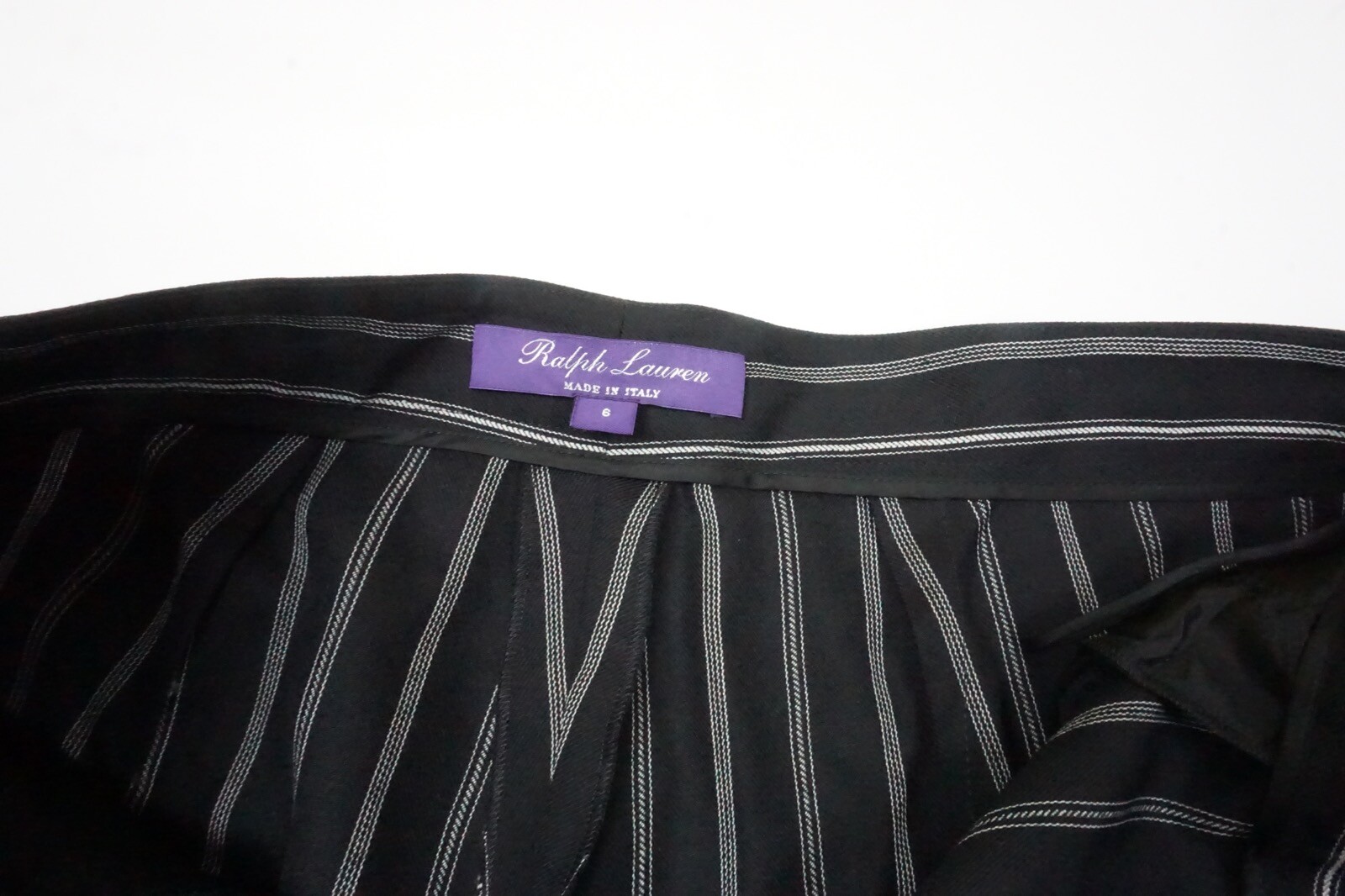 как выглядит Ralph Lauren Collection Purple Label Black Black Striped Wide Pants Sz 6 NEW фото