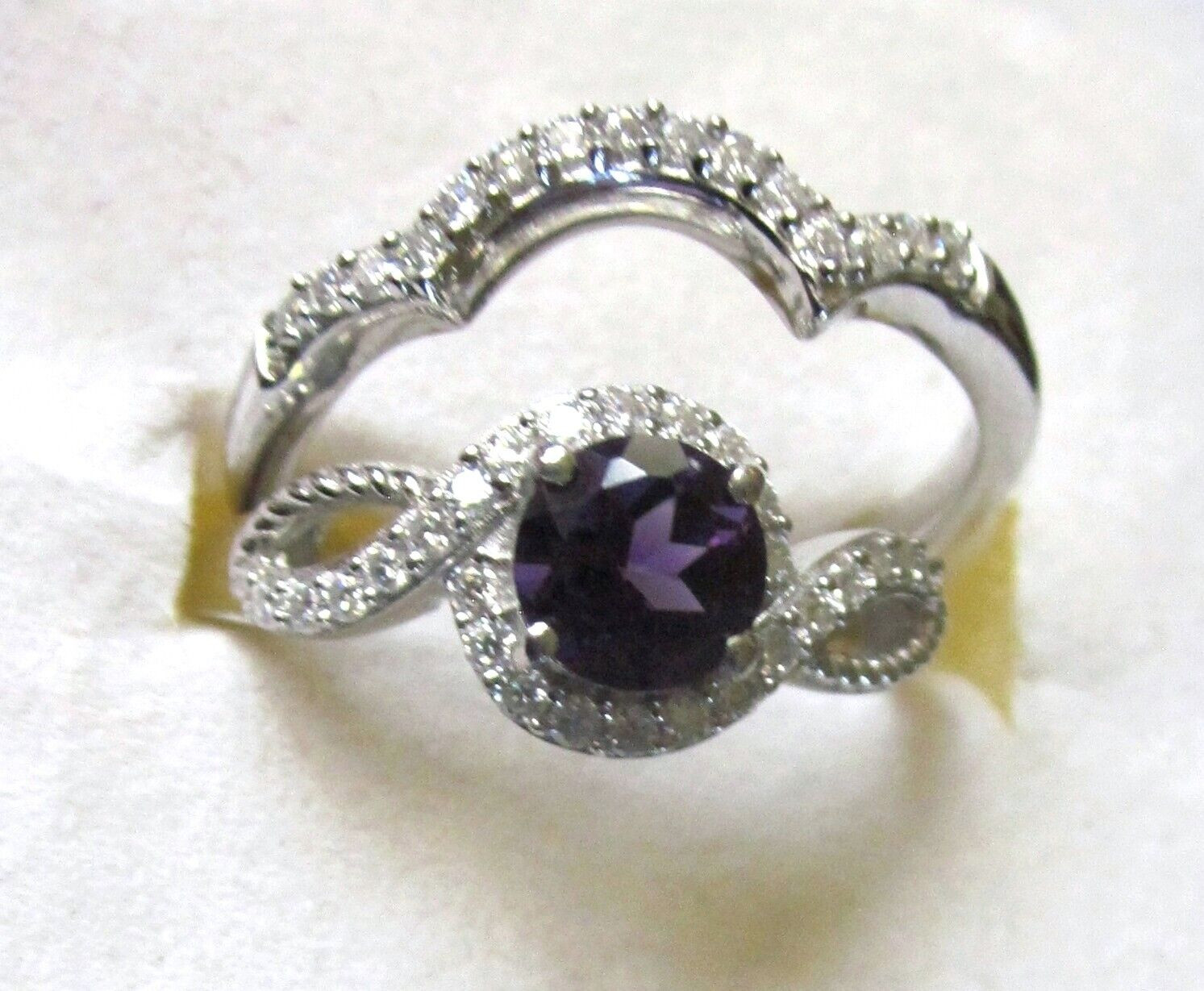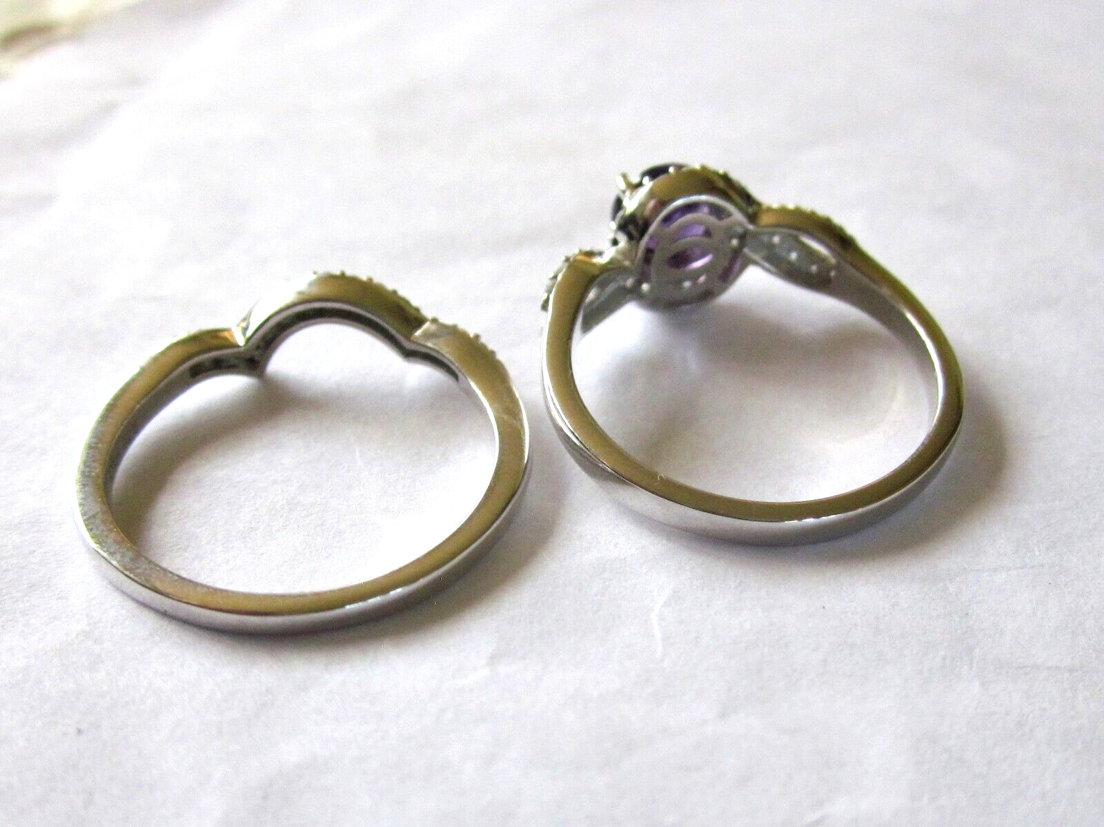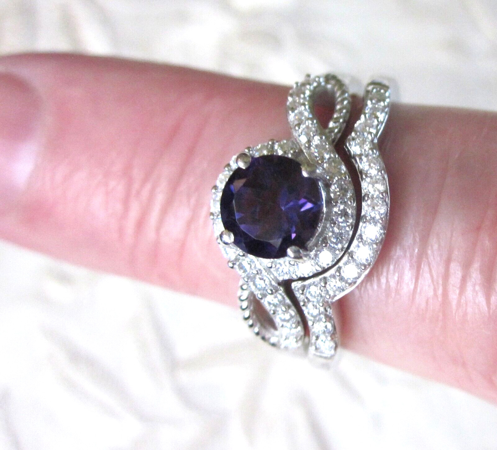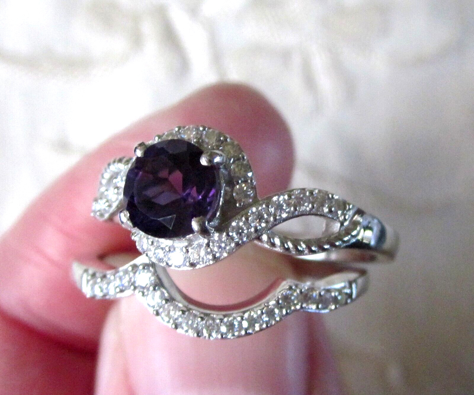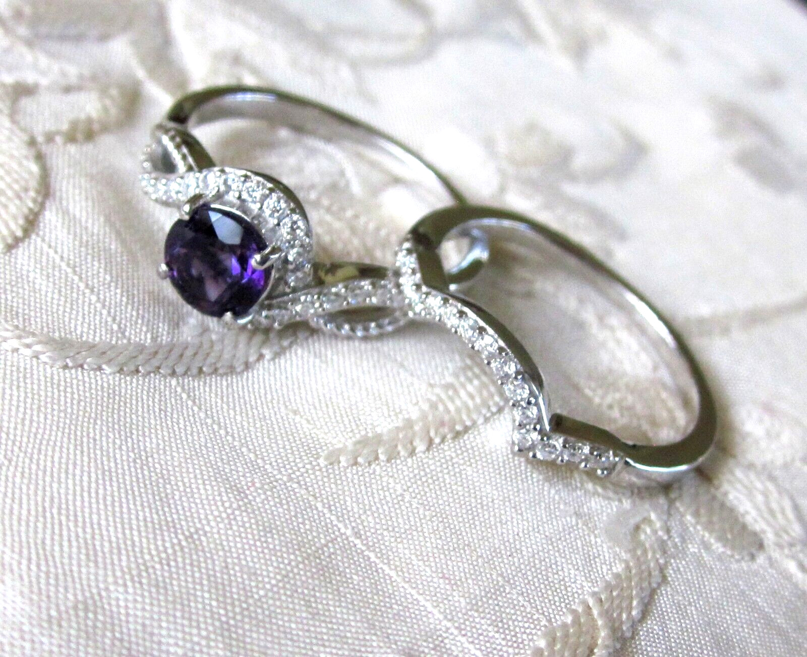 Amethyst Bridal Ring Set / size 9 / 925 Sterling Silver / 1.3ct