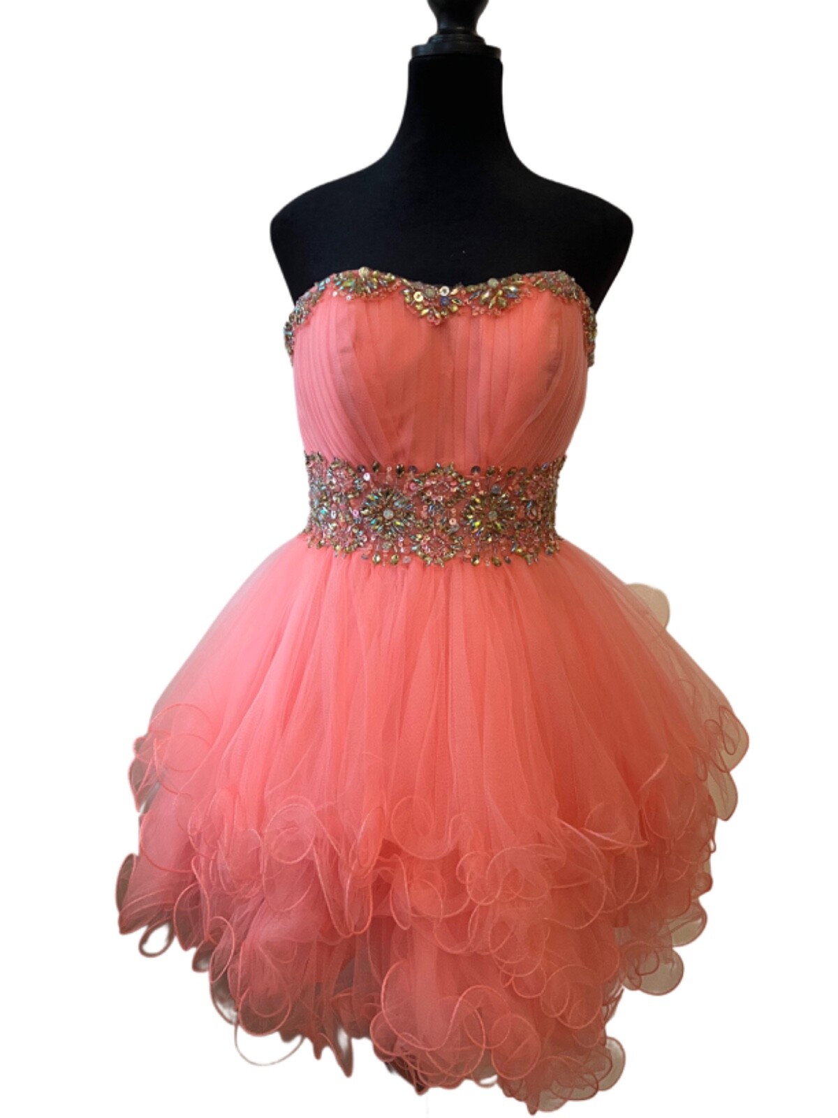 как выглядит fashion prom homecoming short quinceanera party strapless coral dress size M NWT фото