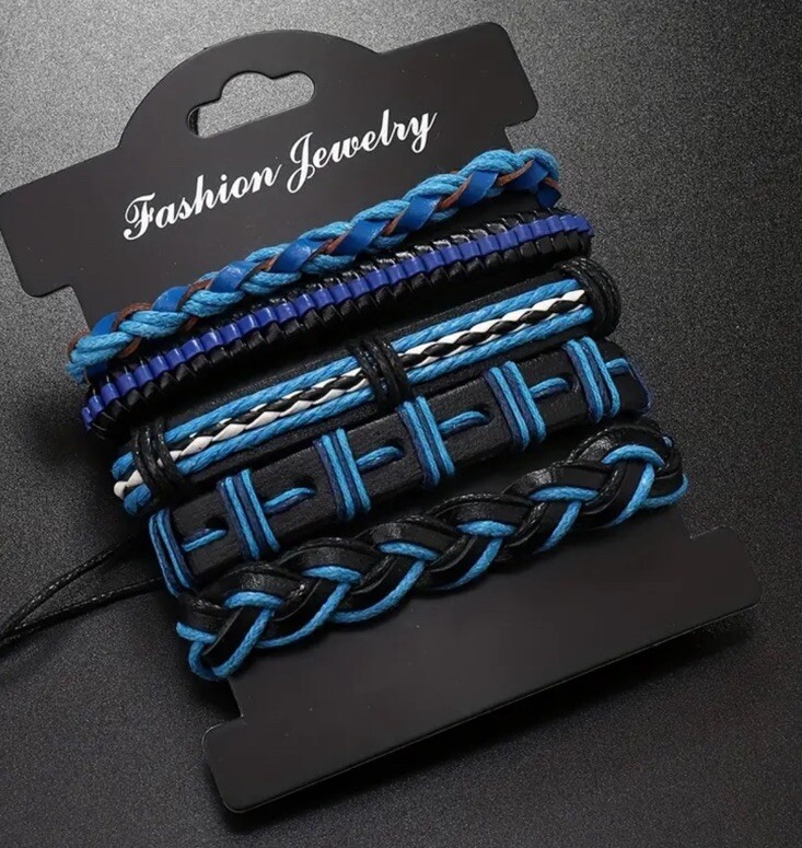 5 PC Leather Punk Bracelet Stackable Adjustable Tie New Free Ship B2784