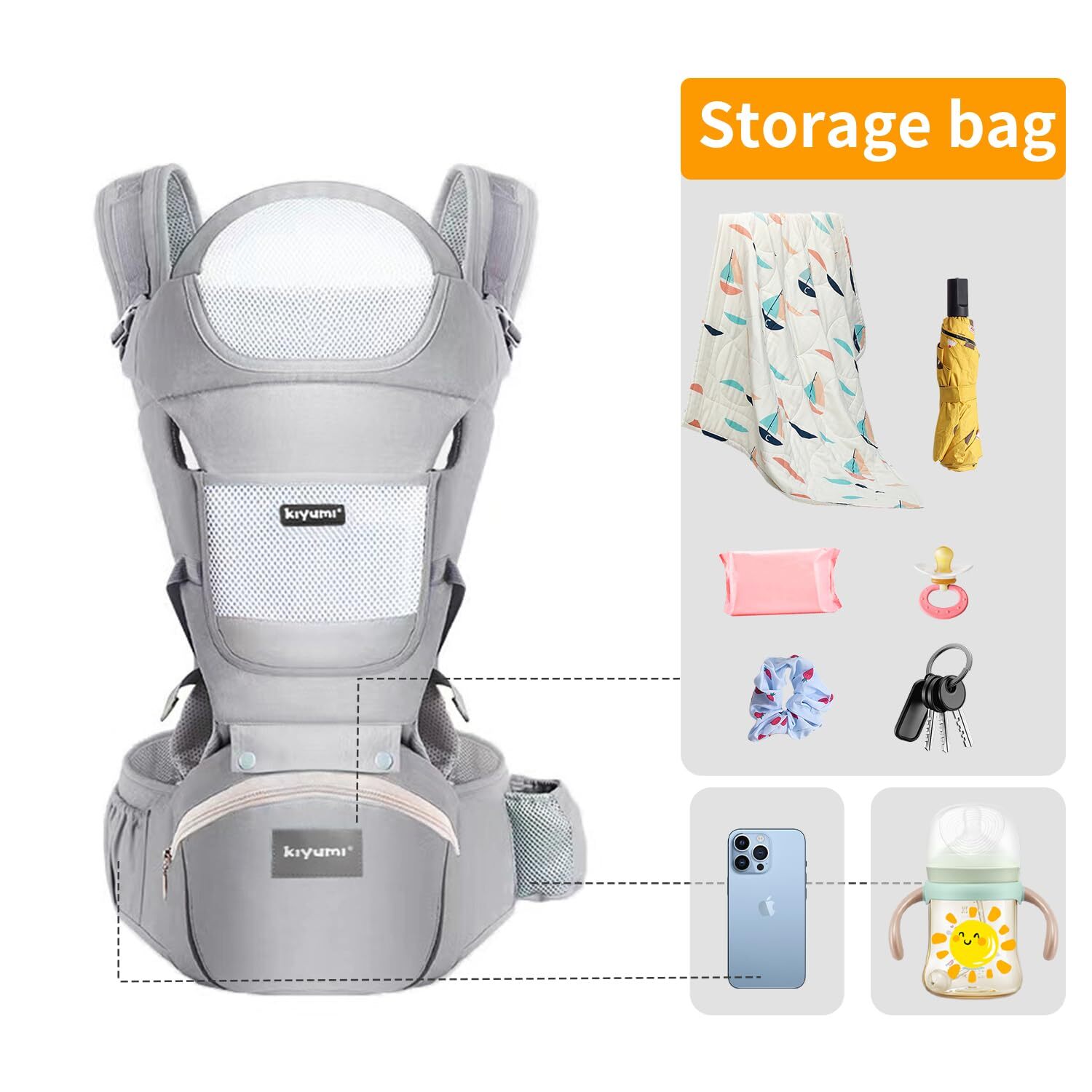 6-in-1 Baby Sling Carrier with Hip Seat, Ergonomic M Position Newborn to Toddler