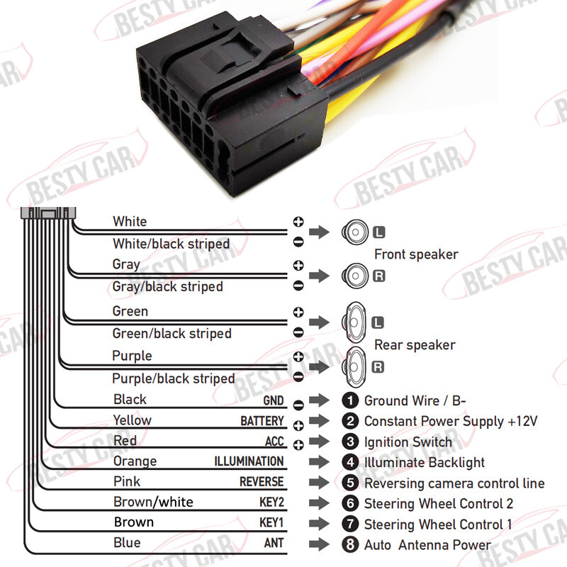 For Standard ISO to 16PIN Car Radio Stereo GPS Power Cable Harness Adapter Wire