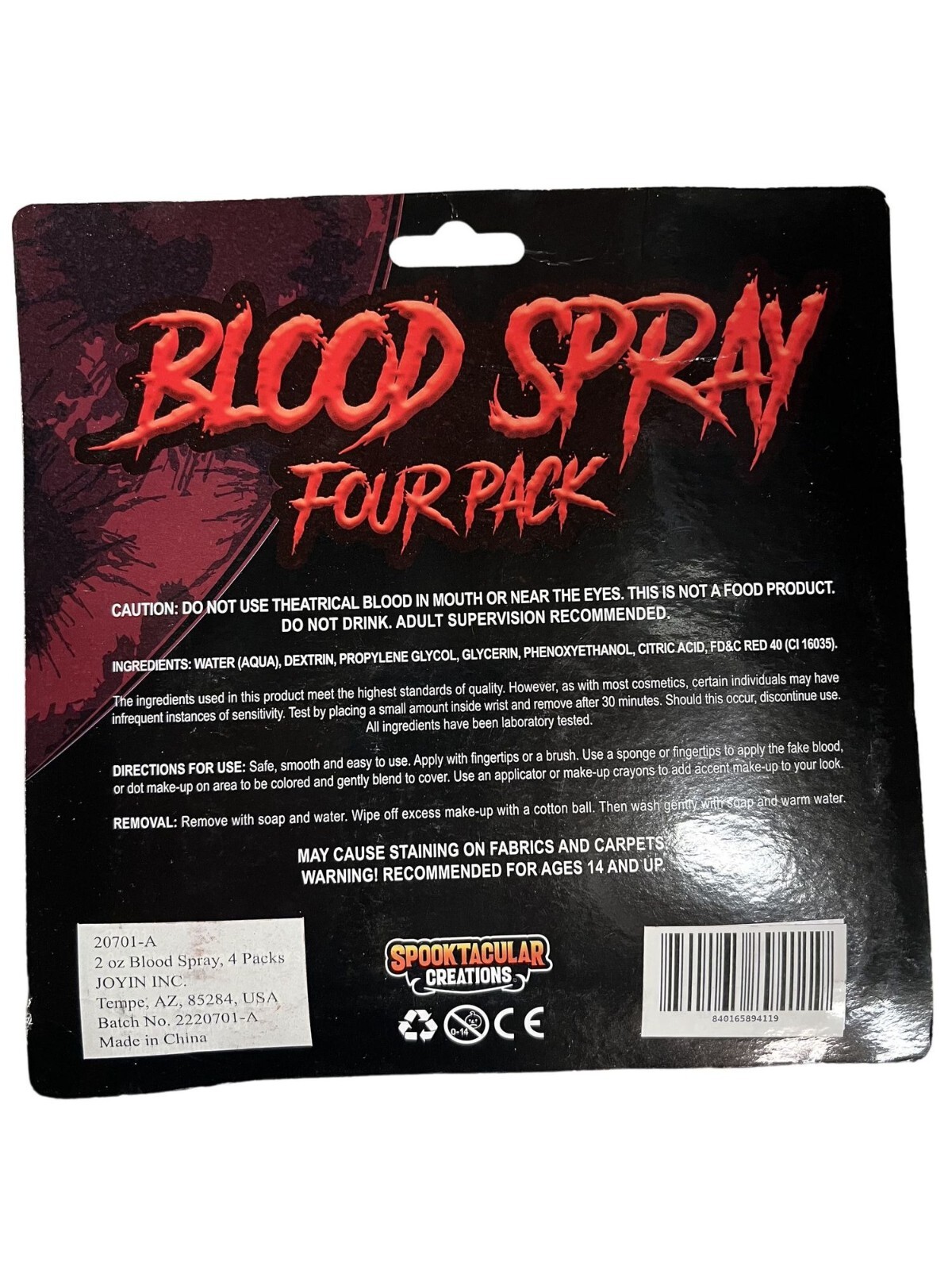Blood Spray Four Pack - Spooktacular Creations - 2 Fl. Oz/60 ml Each - For Hallo