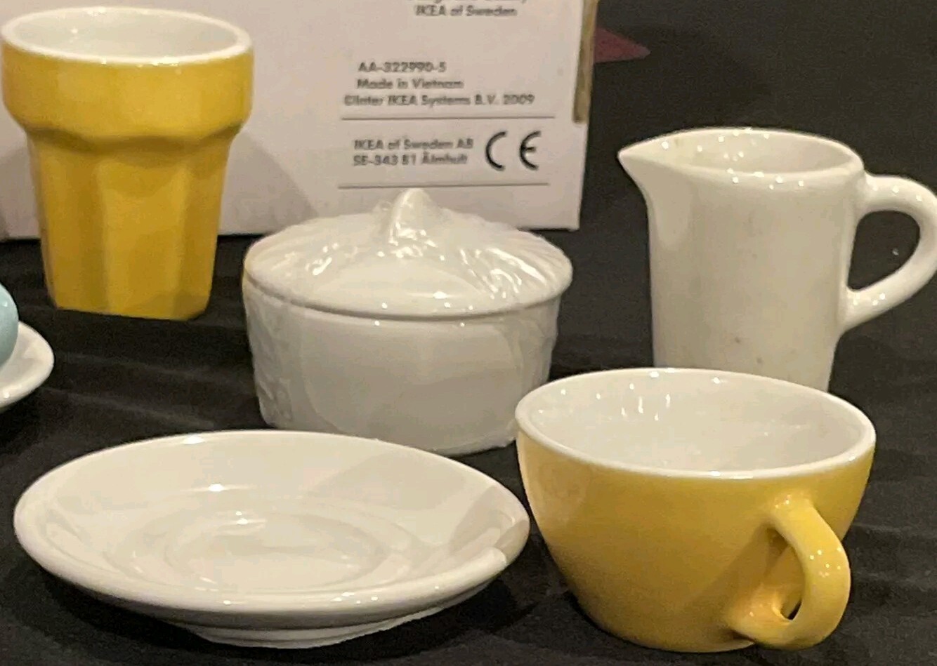 Ikea DUKTIG 15 Piece Ceramic Mini Coffee Tea Set Kid's Play Toy Pastel Color