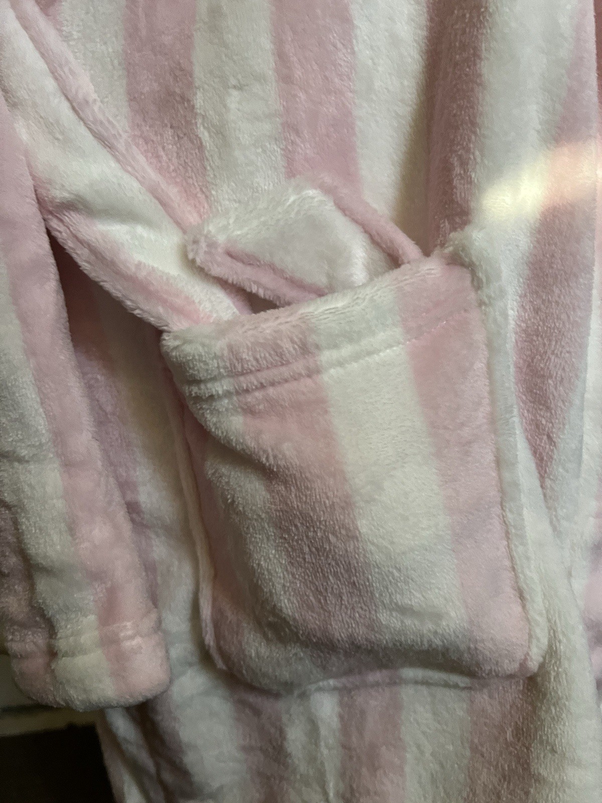 как выглядит Victoria s Secret 2025 Short Cozy Robe Plush Fleece Warm Size M/L Pink/white фото