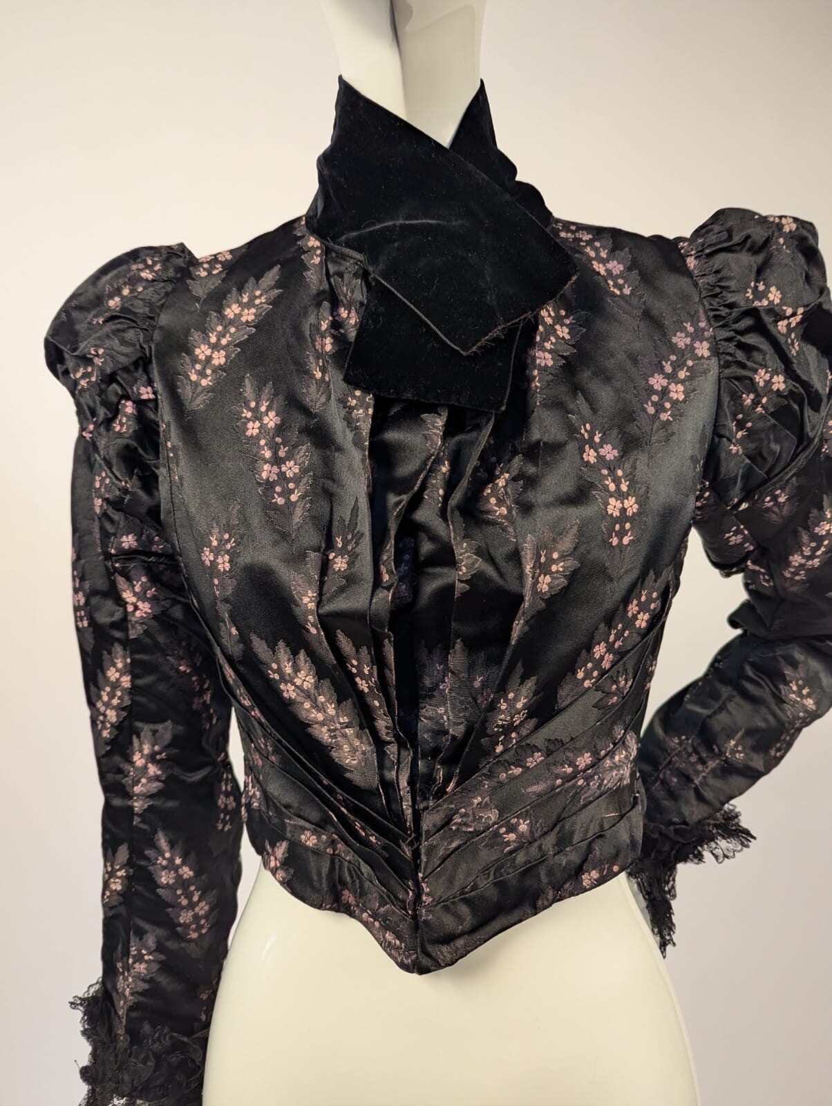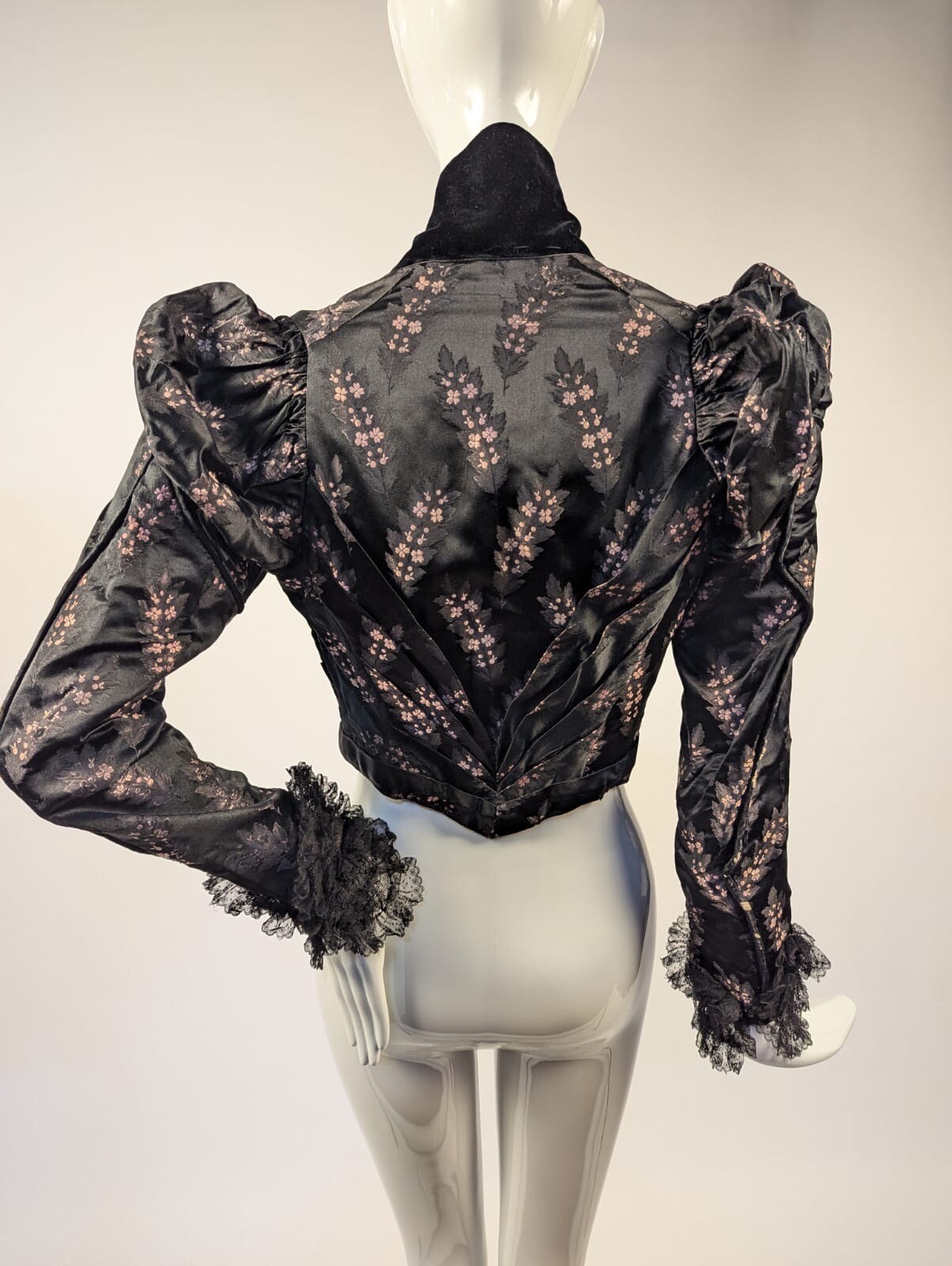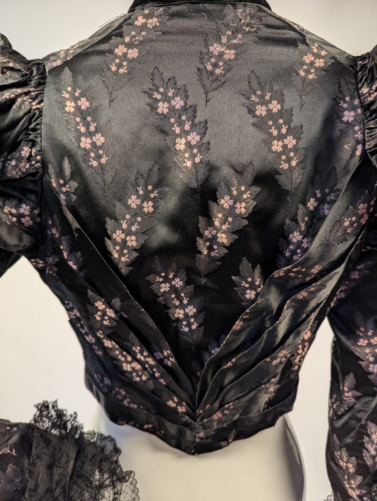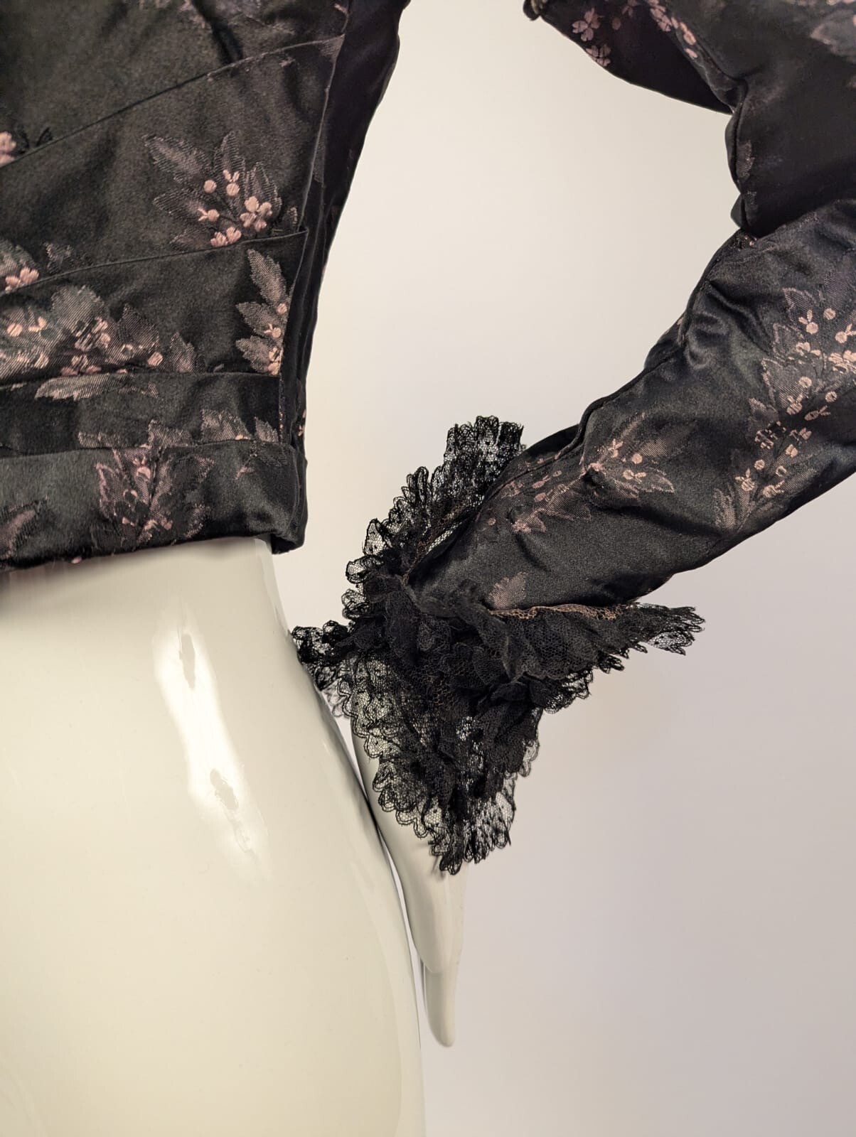1890 S VICTORIAN FRENCH SILK JACQUARD BODICE W UNUSUAL LACE RUFFLED CUFFS