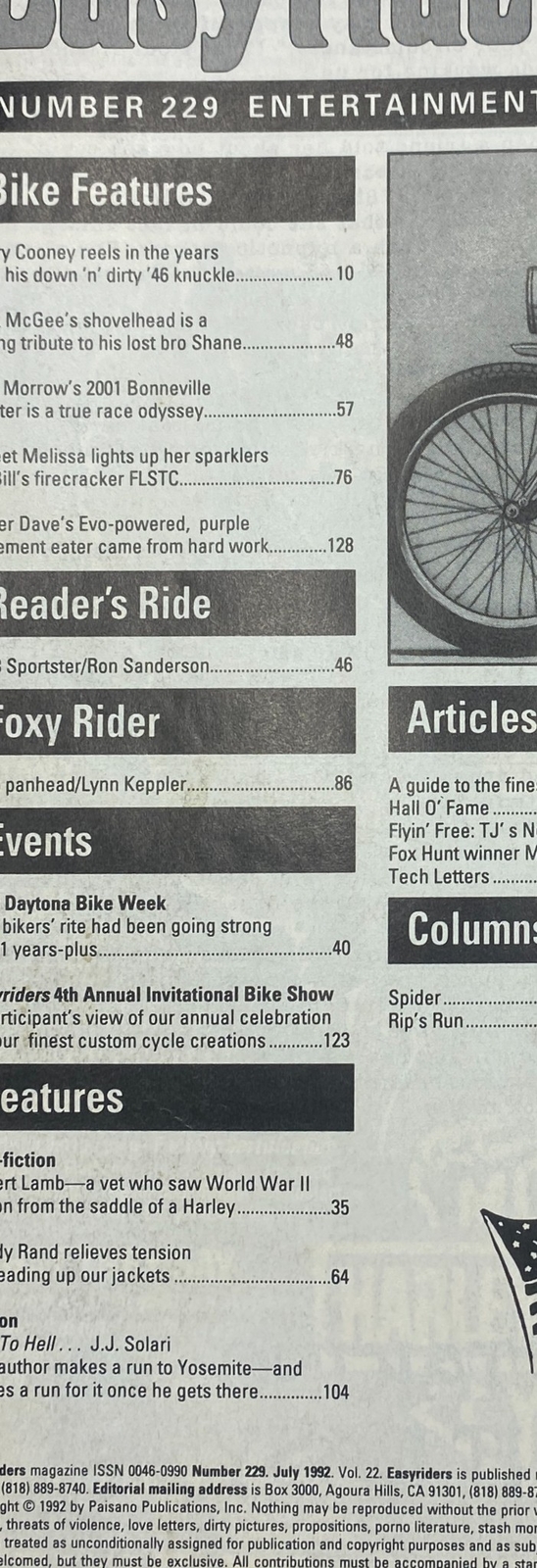 Easyriders Magazine July 1992 4th Annual Invitational Bike Tattoo Show No Label