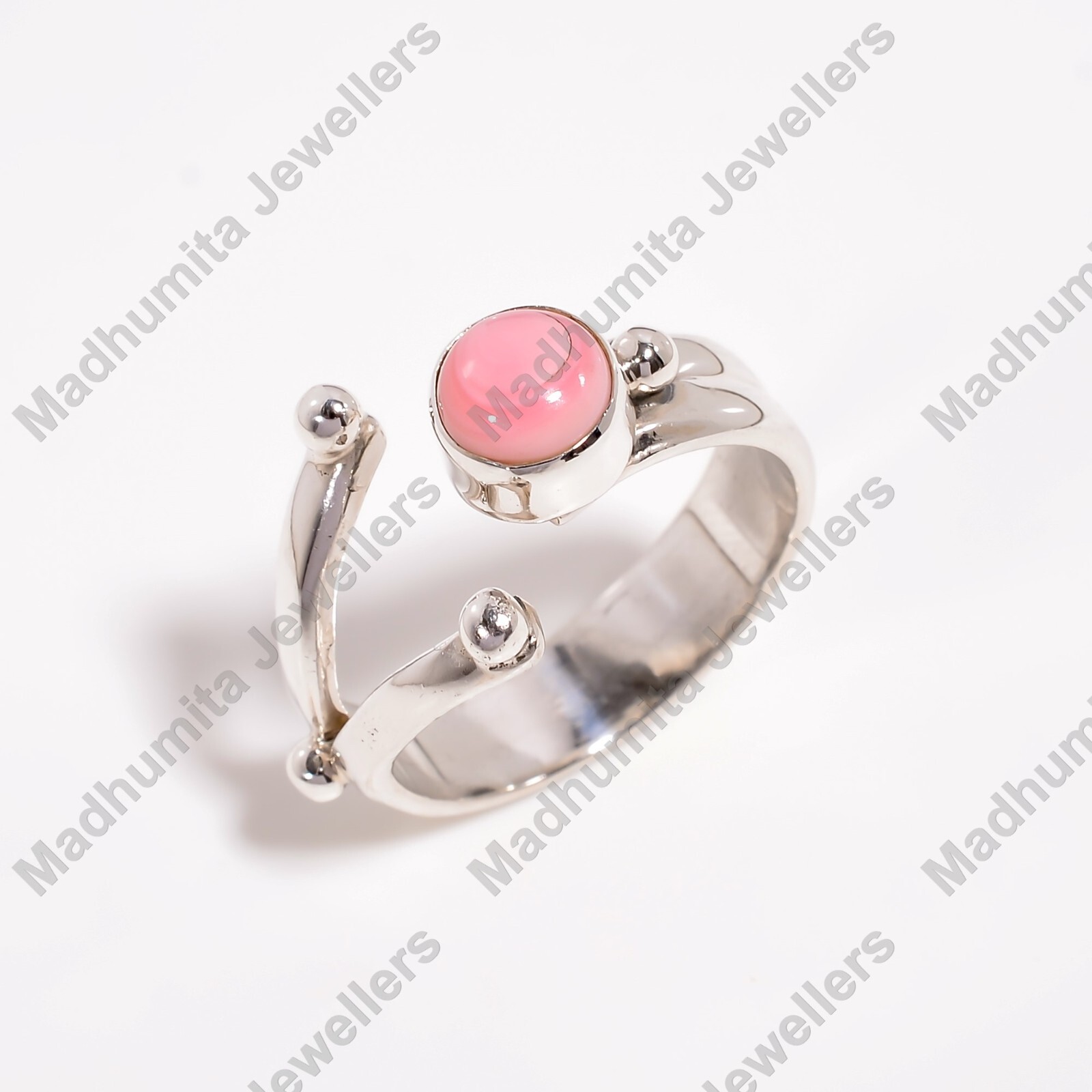 Natural Pink Opal Gemstone Solid 925 Sterling Silver Handmade Round Ring