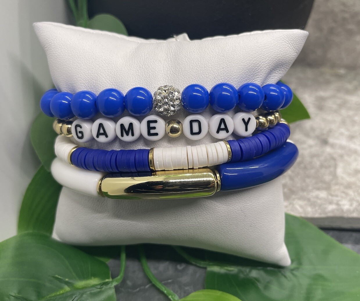 4 PC Boho Beaded Stackable 7 Plus Stretch Charm Bracelet Set Football B3103