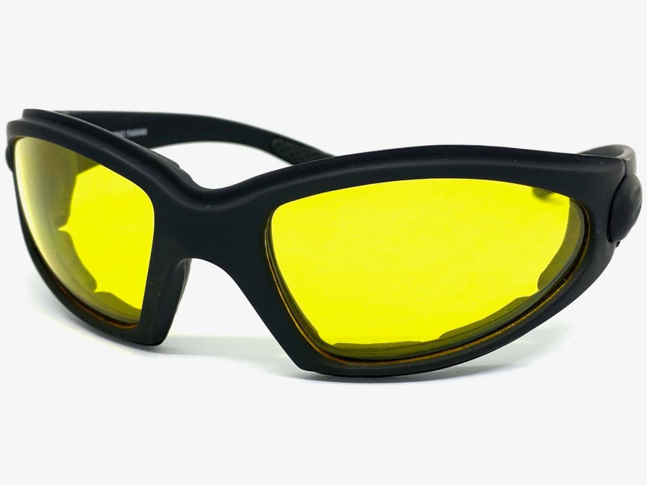 как выглядит MOTORCYCLE BIKER Day Night Riding PADDED SUN GLASSES Black Frame HD Yellow Lens фото