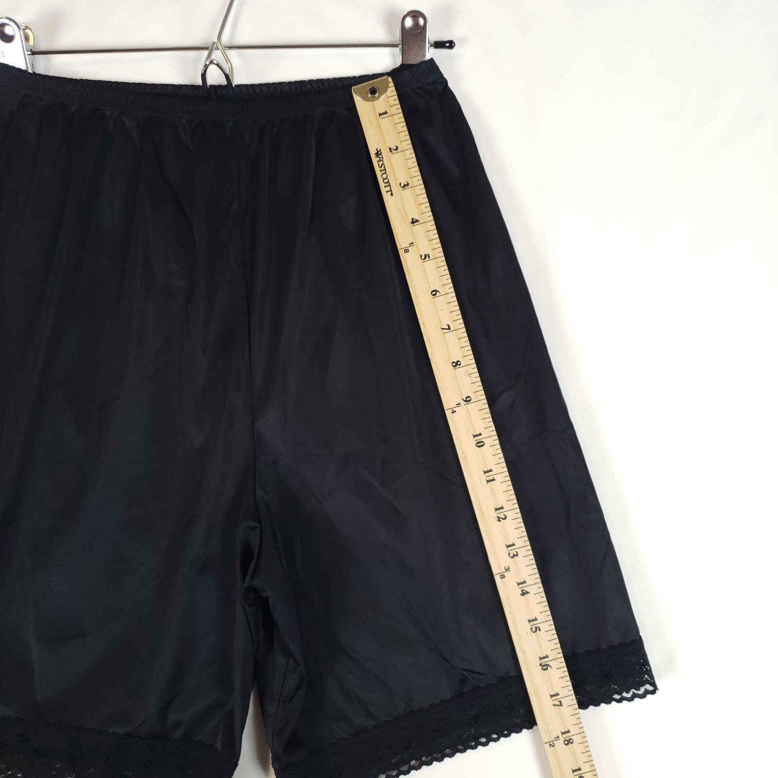 как выглядит Vanity Fair Nylon Pettipants Small 18" Bloomer Granny Panty Blk Lace Trim фото
