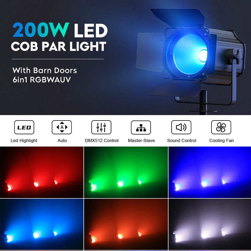 200W RGBWA UV COB LED PAR Light RGBW Stage Bar Wash Lighting DMX DJ Disco Light
