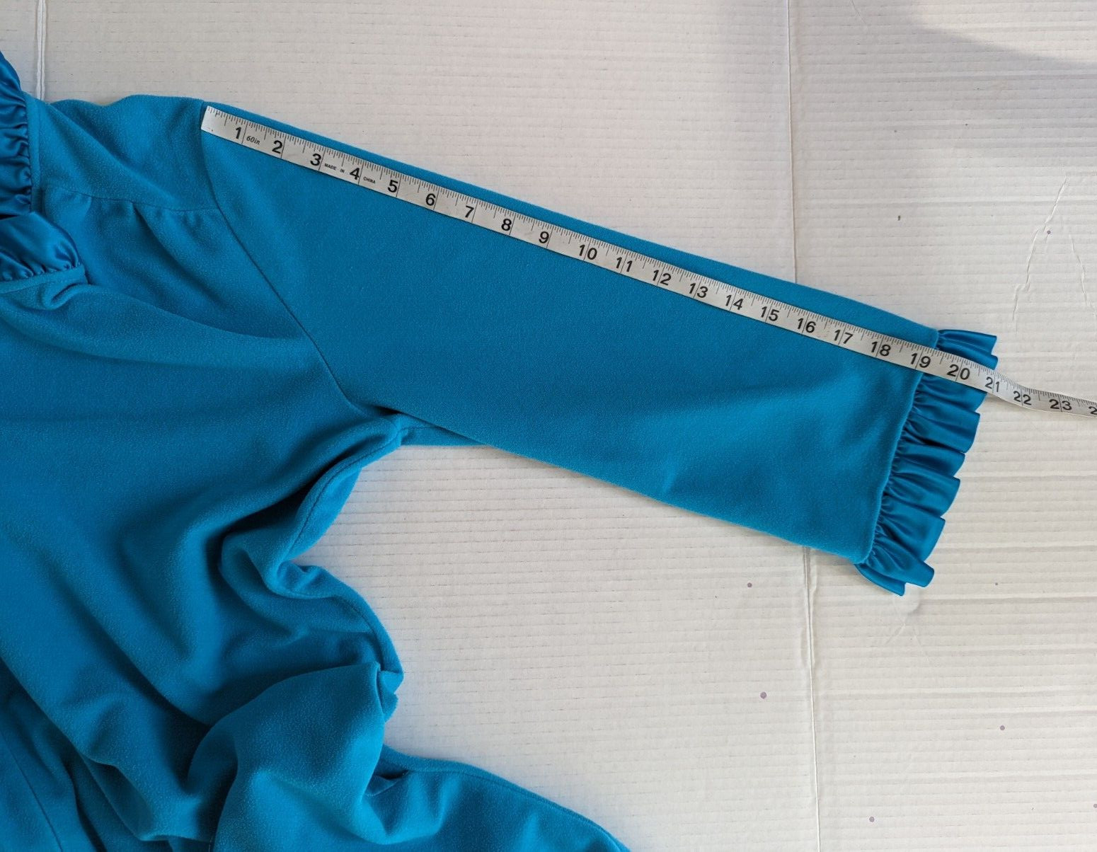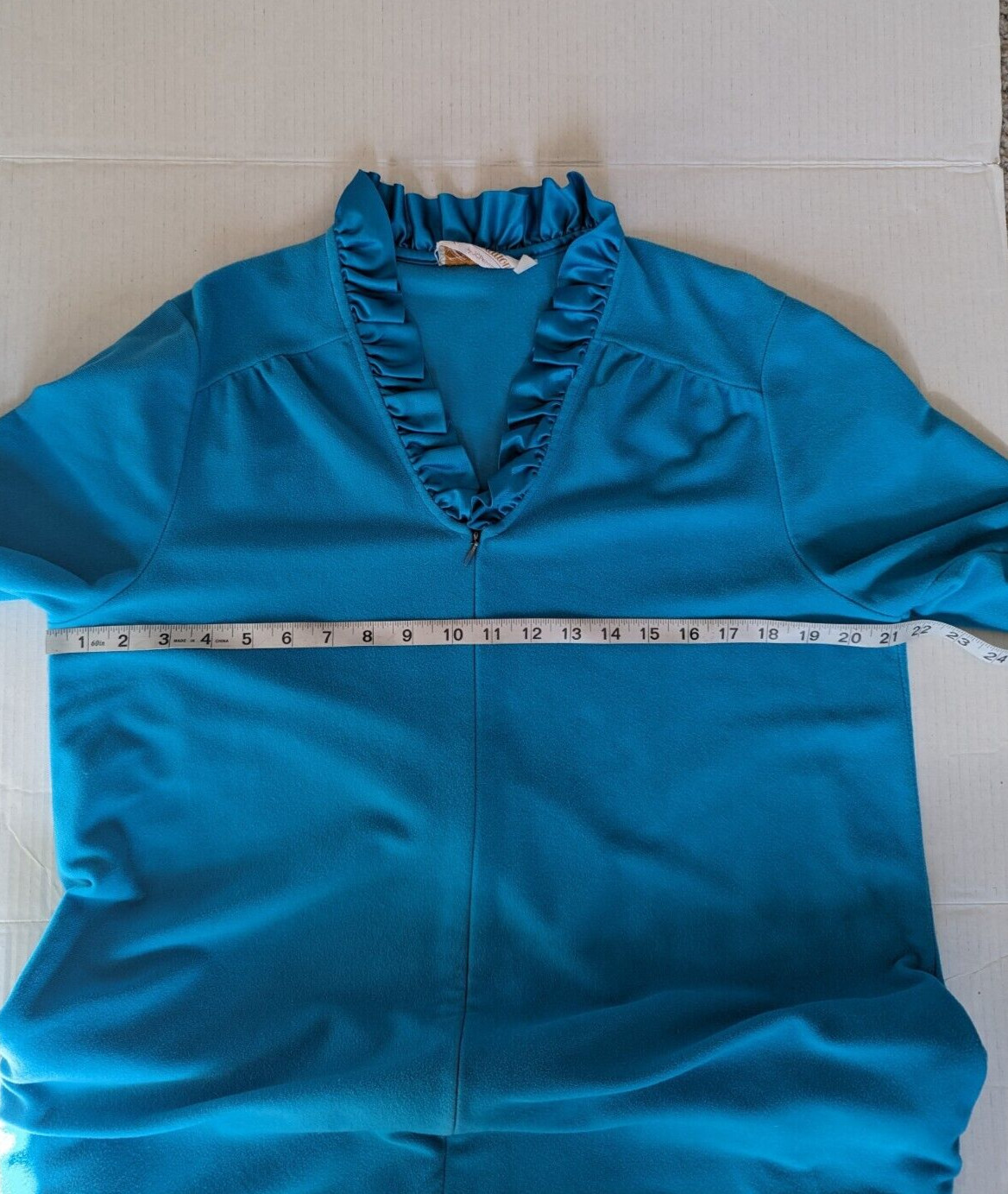 как выглядит VTG Correlations by JC Penney Womens M Velour Robe Satin Ruffle Detail Blue Teal фото