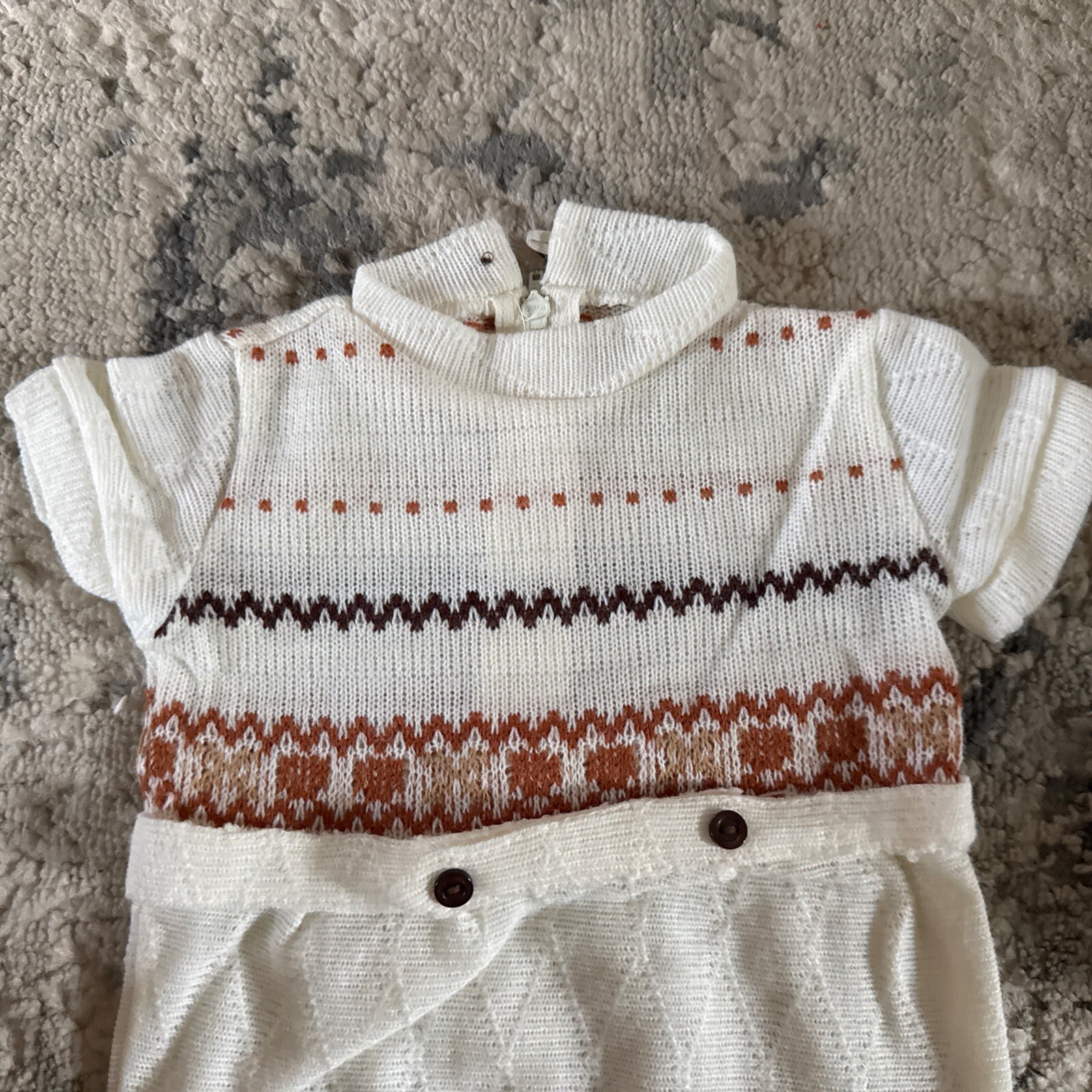 как выглядит Vintage Toddler Child One Piece Sweater Knit Zip Up Brown Zig Zag Outfit Buttons фото