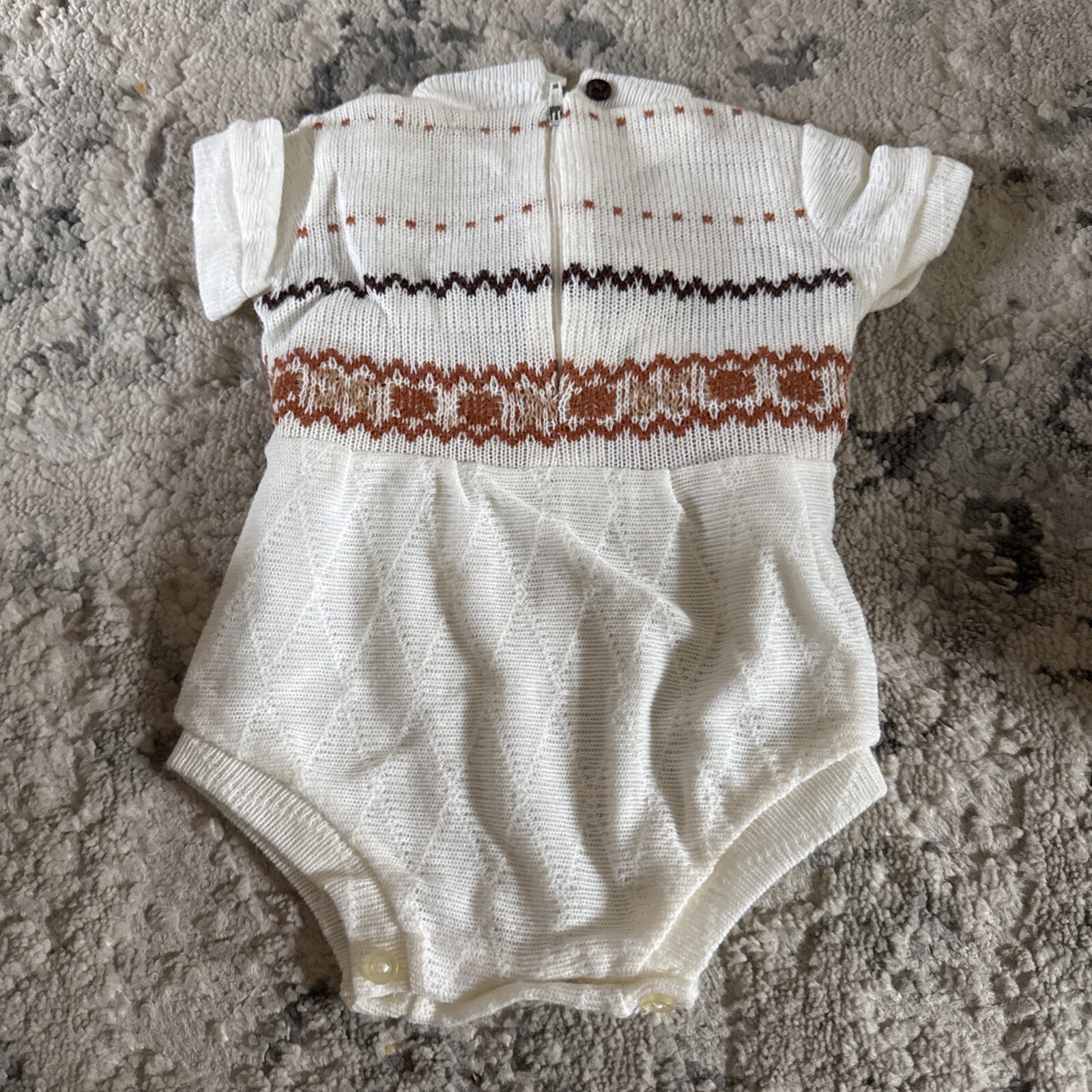 Vintage Toddler Child One Piece Sweater Knit Zip Up Brown Zig Zag Outfit Buttons
