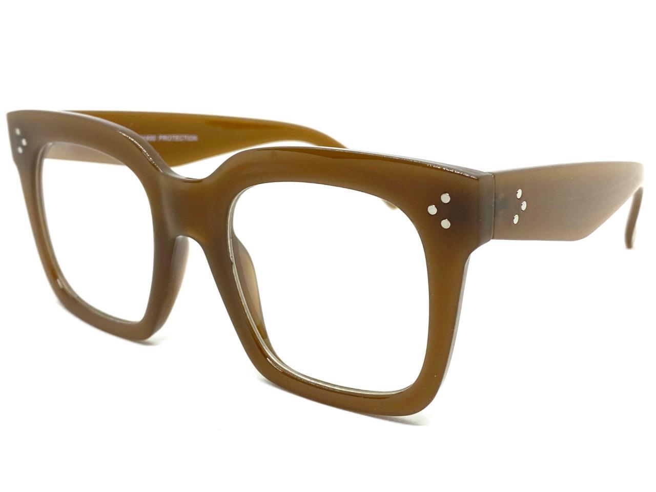 Oversized Vintage Retro Style Clear Lens EYE GLASSES Large Square Brown Frame