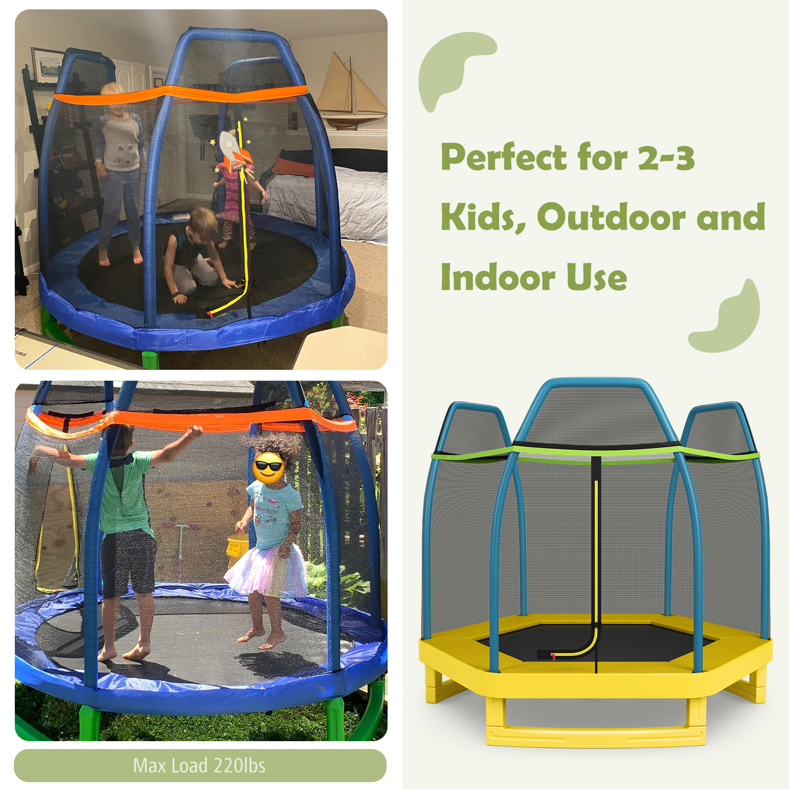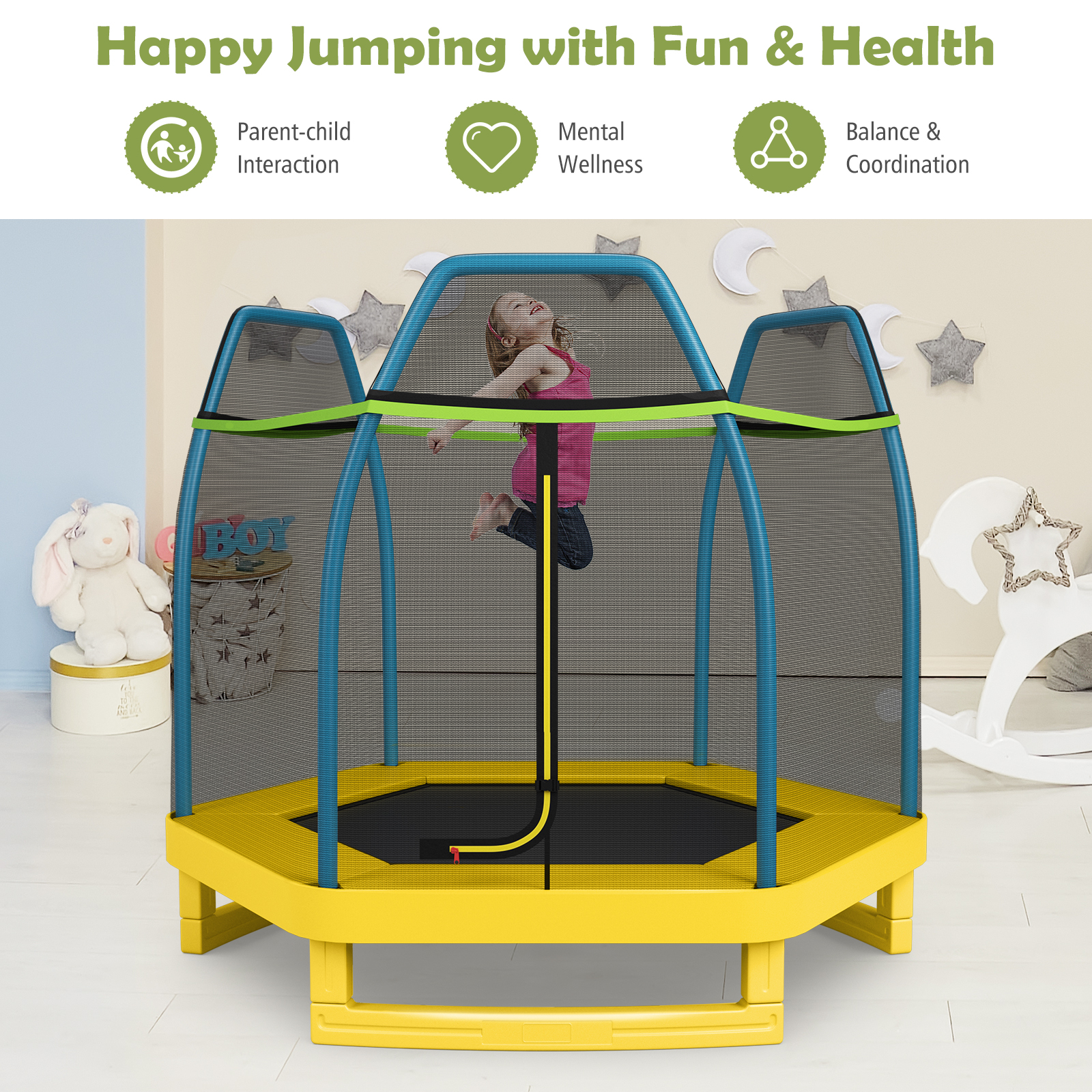 7FT Kids Trampoline Outdoor Indoor Recreational Bounce Jumper ASTM Approved