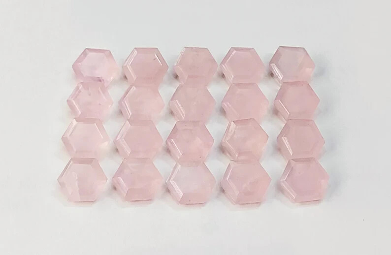 как выглядит WHOLESALE NATURAL ROSE QUARTZ FACETED HEXAGON SHAPE LOOSE GEMSTONE фото