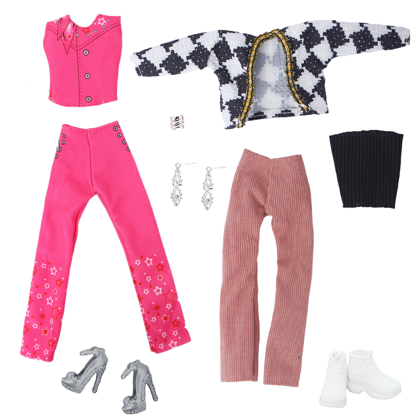 Set Includes: Coat/Jacket, Jewelry, Outfit, Pants, Shoes, Top