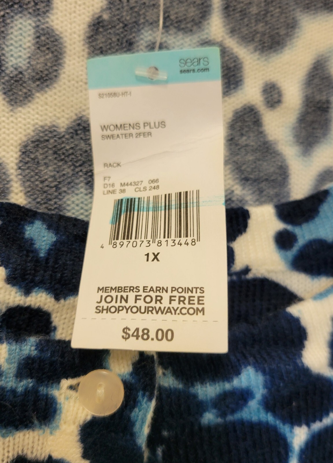 46 Laura Scott Women s Plus Sz Leopard Print Knit Cardigan W/Attached Tank Top