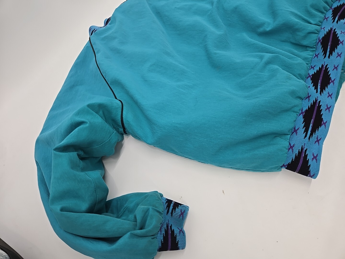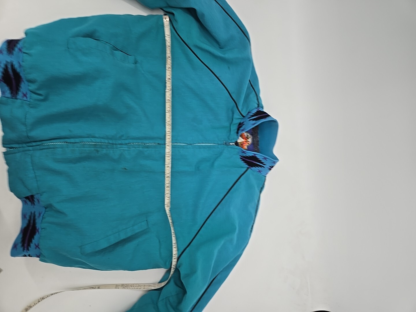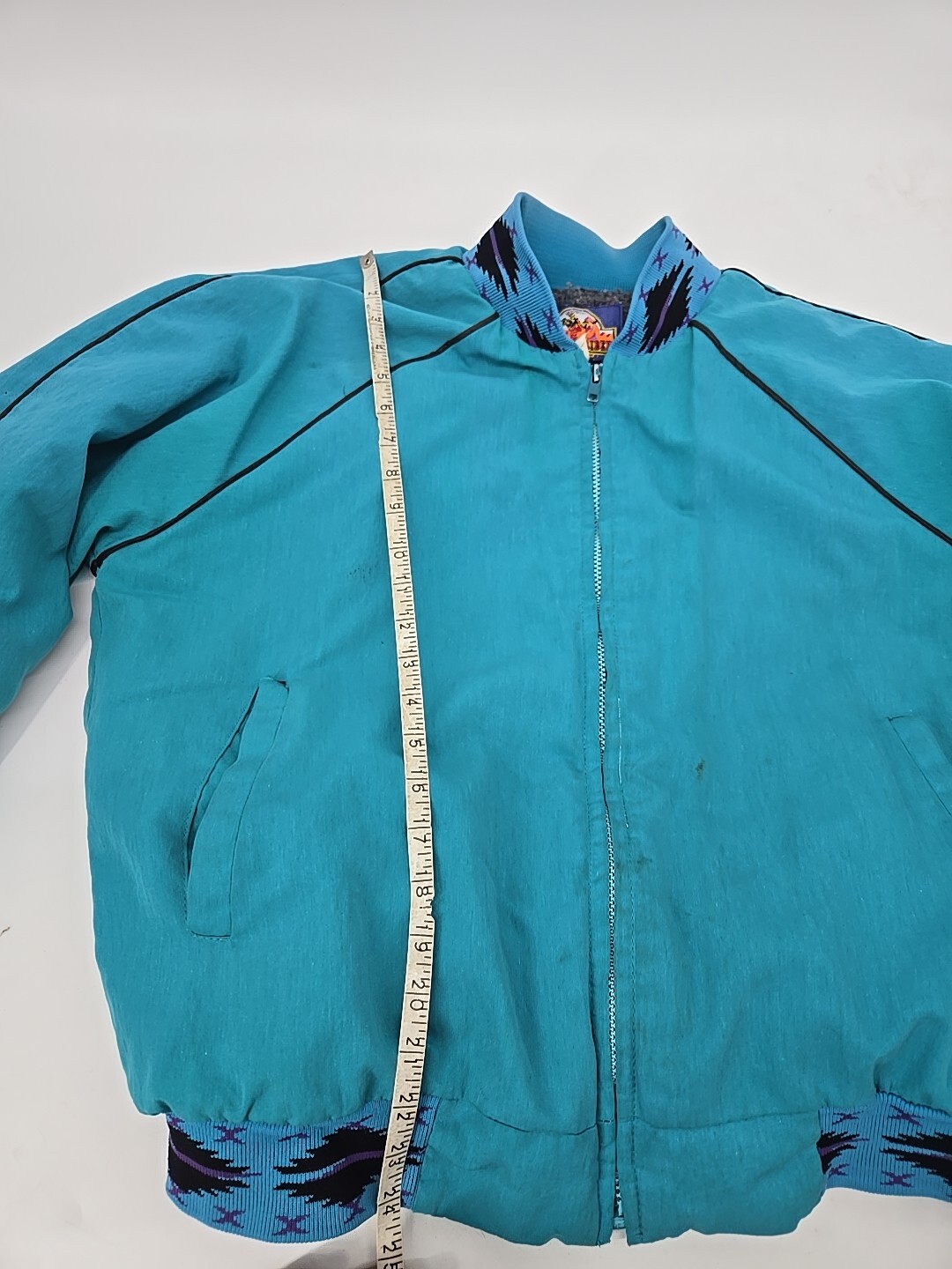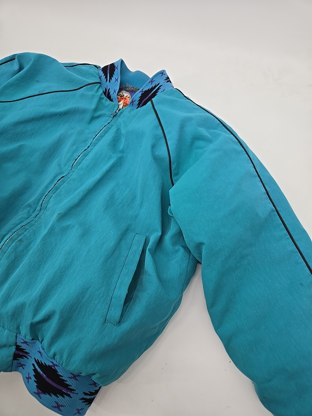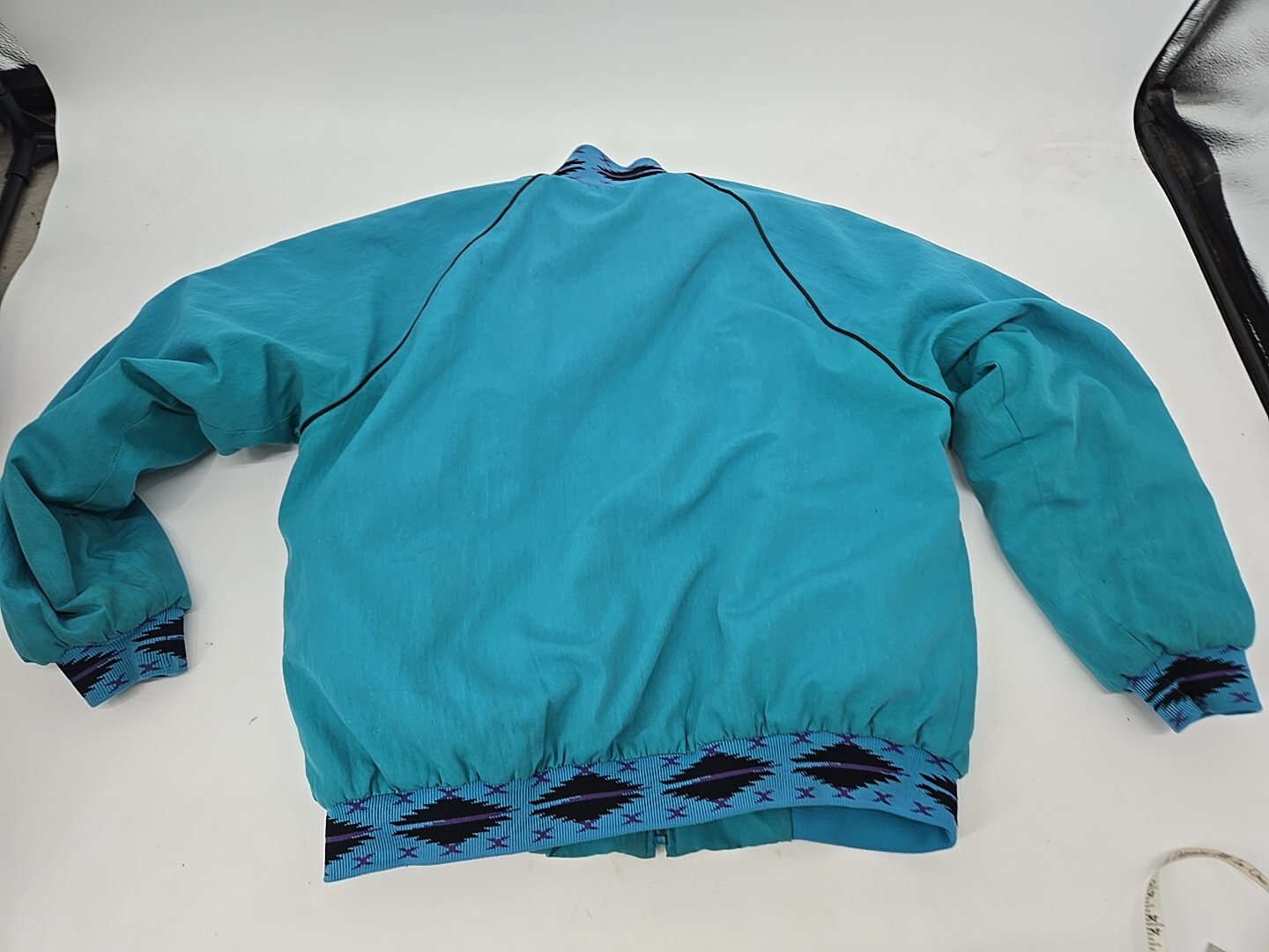 как выглядит Vintage 80s Western Farm Jacket Teal, Faded Native Print, Large Retro Cowboy фото