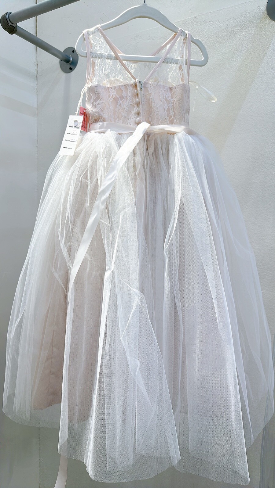 Flower Girl Dress Blush - Lace Top, Tulle Skirt, Pink Rhinestones Sash -Size 4