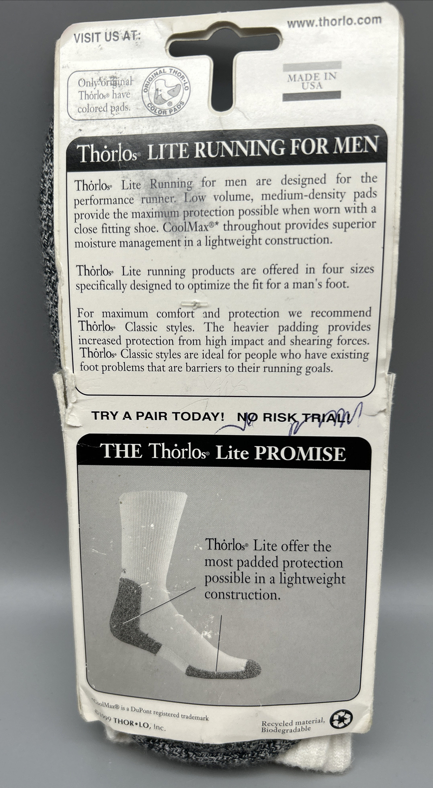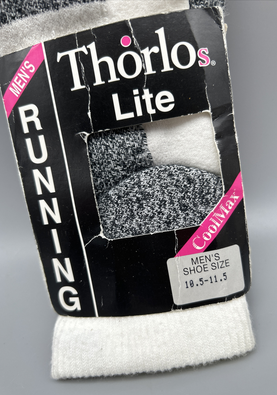 VTG Thorlos Lite Mens Running Cool Max Crew Socks Sz 10.5-11.5 White Gray NOS