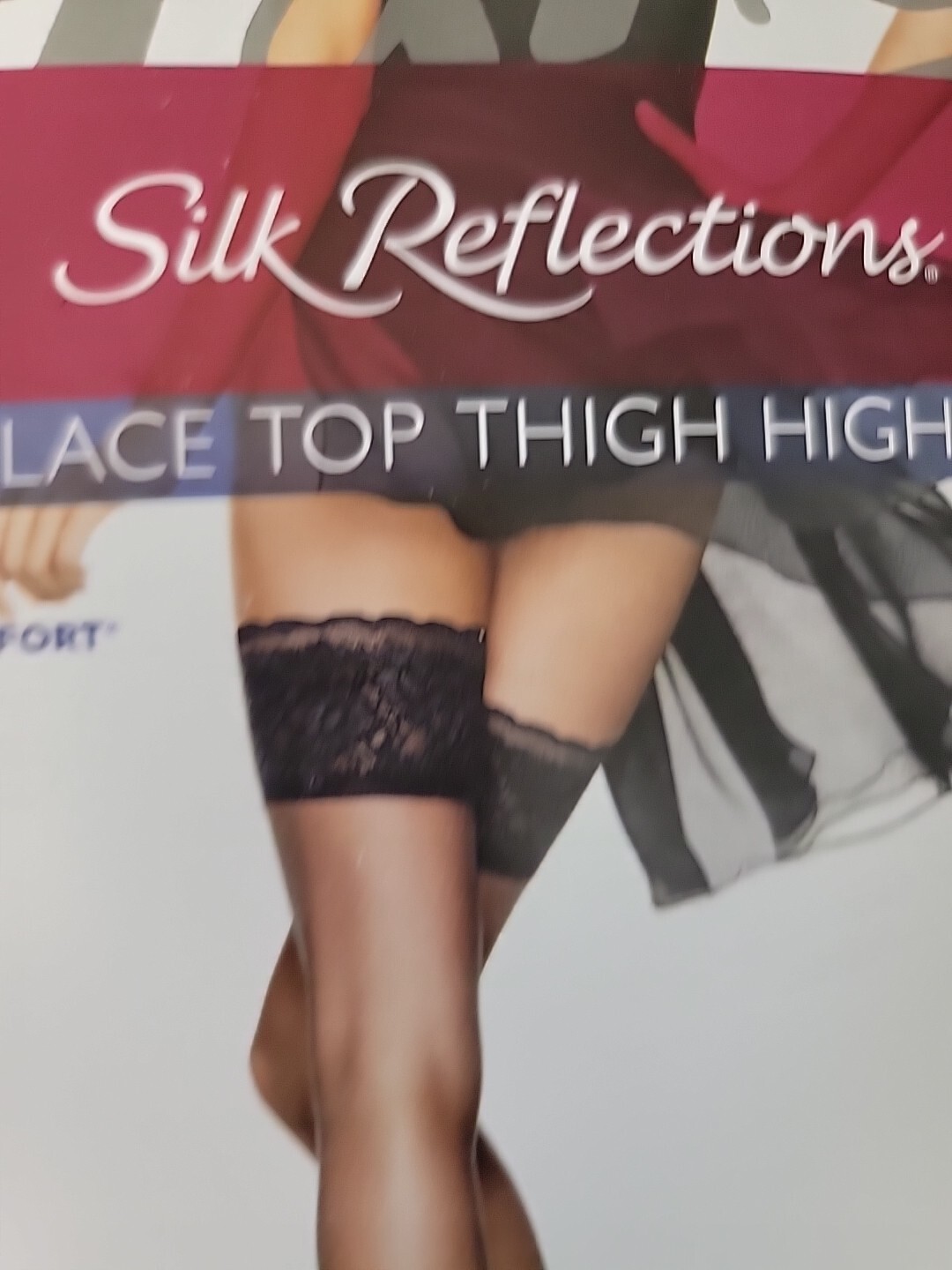BEIGE THIGH HIGH HANES SILK REFLECTIONS SILKY SHEER TOE LACE TOP BARELY THERE CD