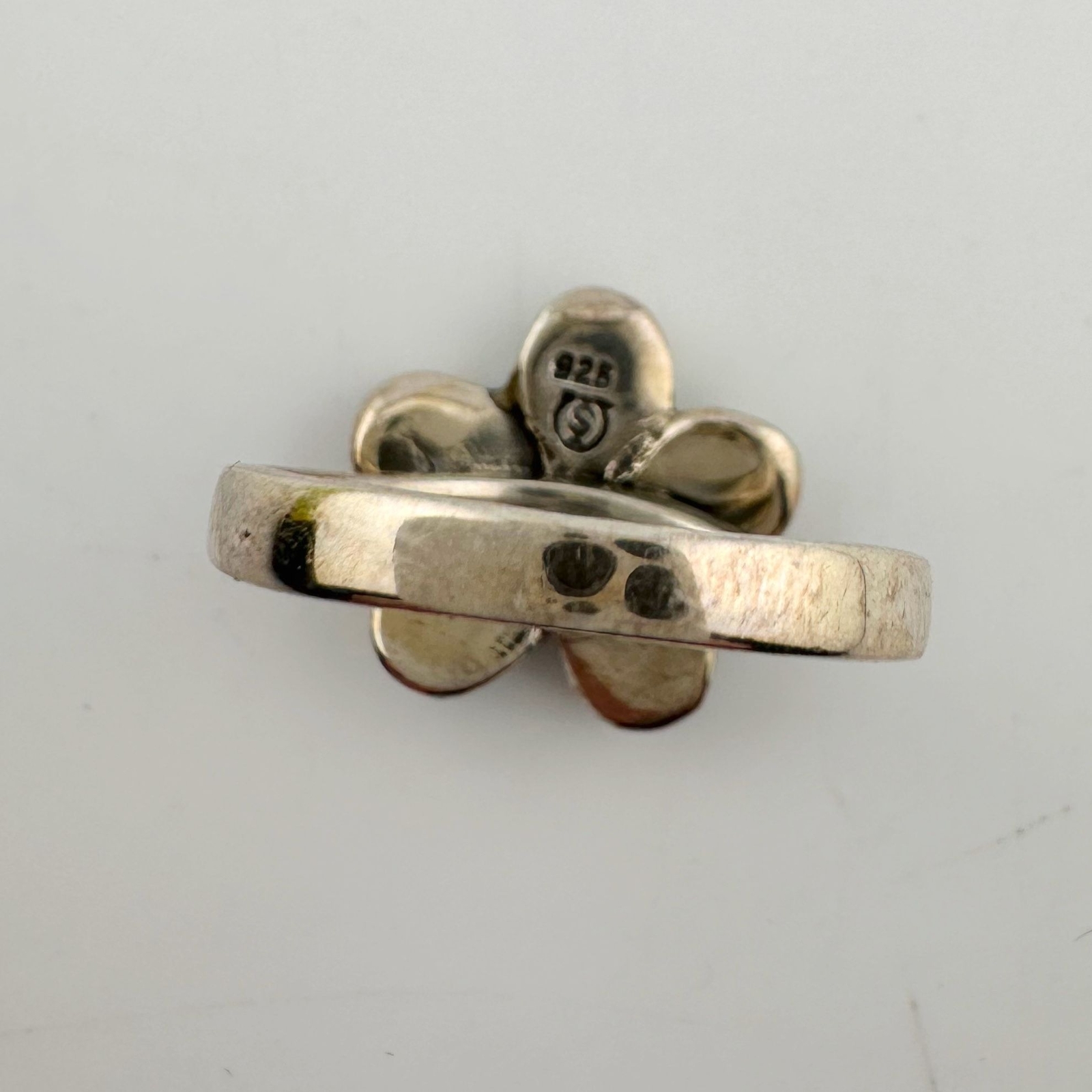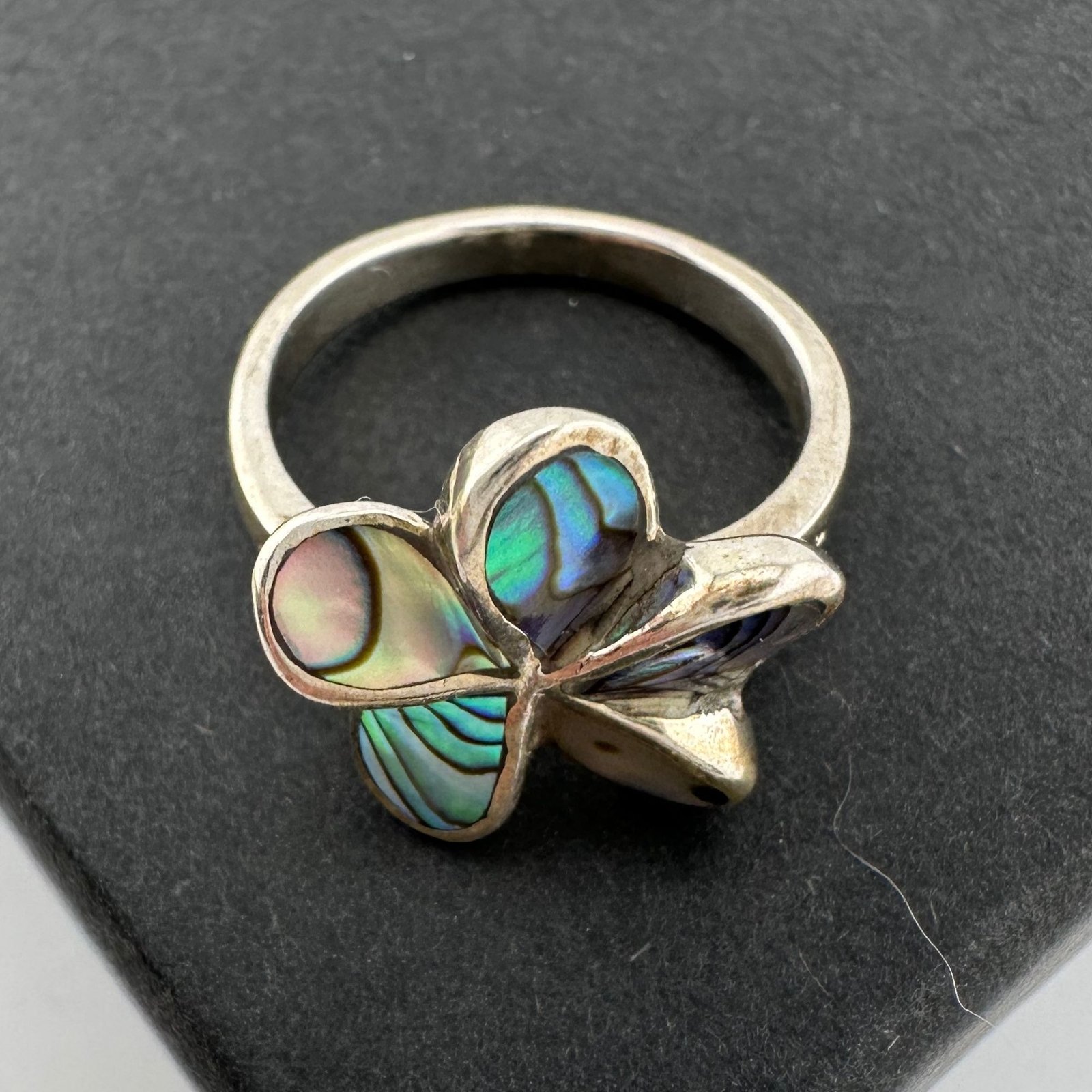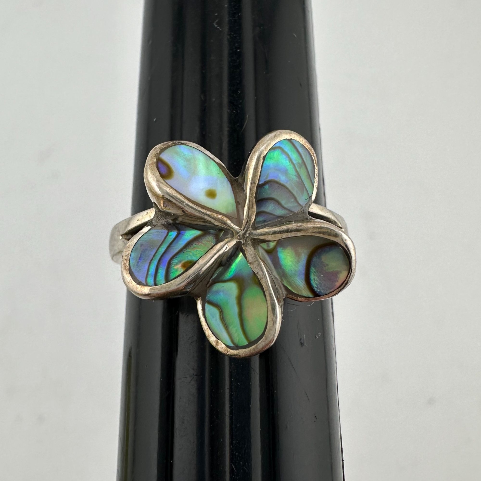 Natural Abalone Flower Ring in Sterling Silver Size 9.75