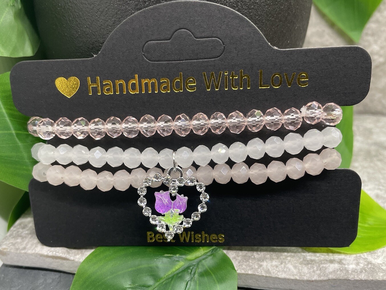 3 PC Handmade Beaded Boho 6.5 Plus Stretch Charm Bracelet Set Flower B3677