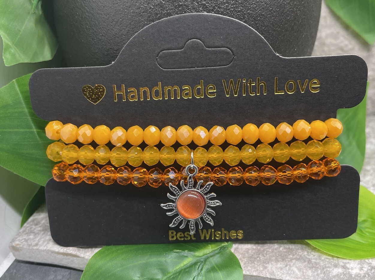 3 PC Handmade Beaded Boho 6.5 Plus Stretch Charm Bracelet Set Sunburst B3680