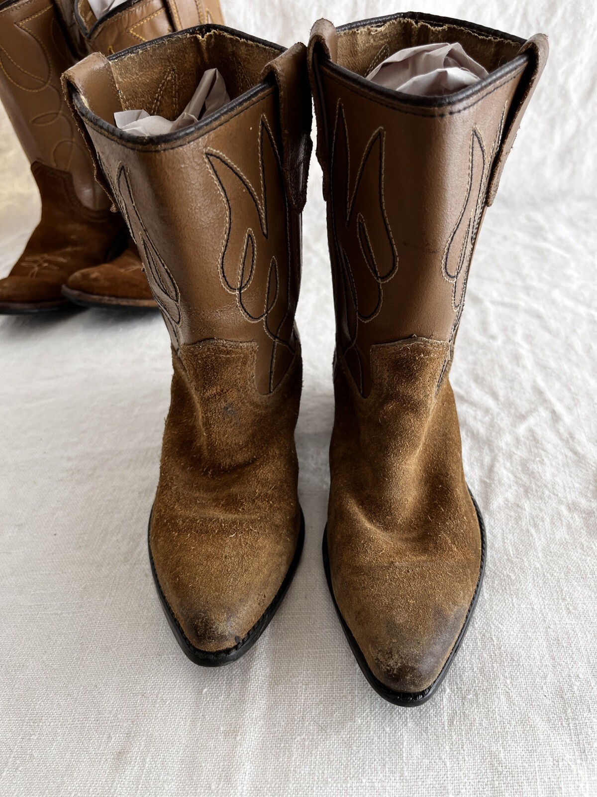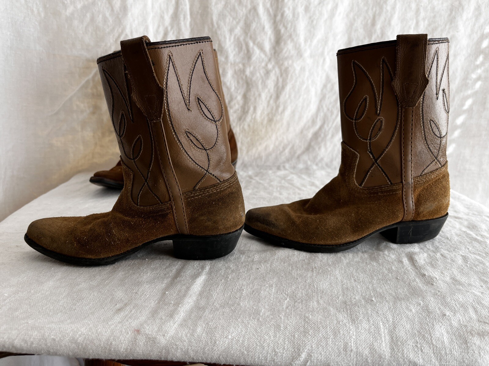 Vintage 1950's distressed suede cowboy boots boys room decor sz 4