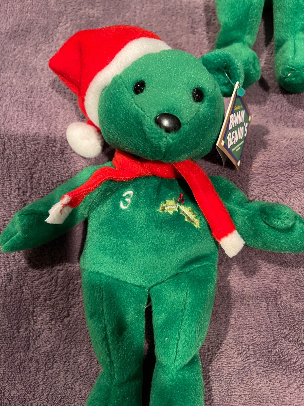• SALVINO BAMM BEANO S green bears - lot of three - CHRISTmas themed - 1998