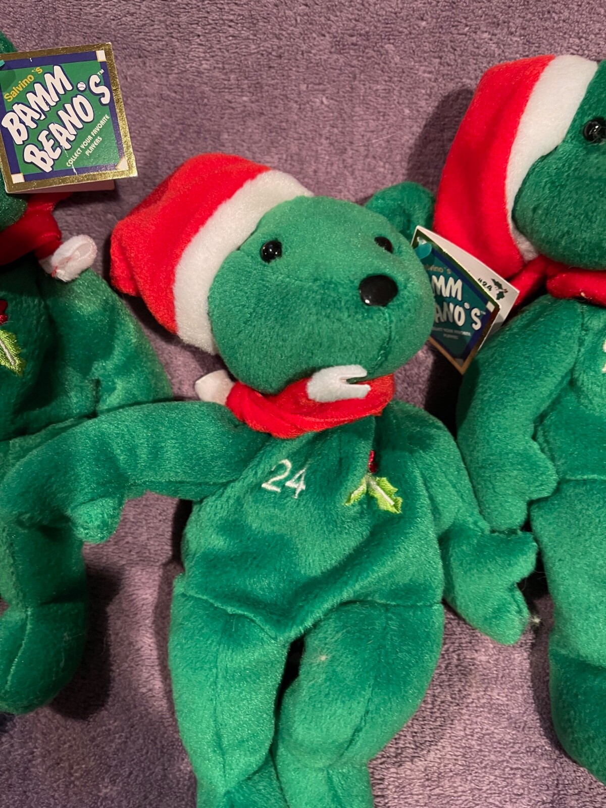 • SALVINO BAMM BEANO S green bears - lot of three - CHRISTmas themed - 1998