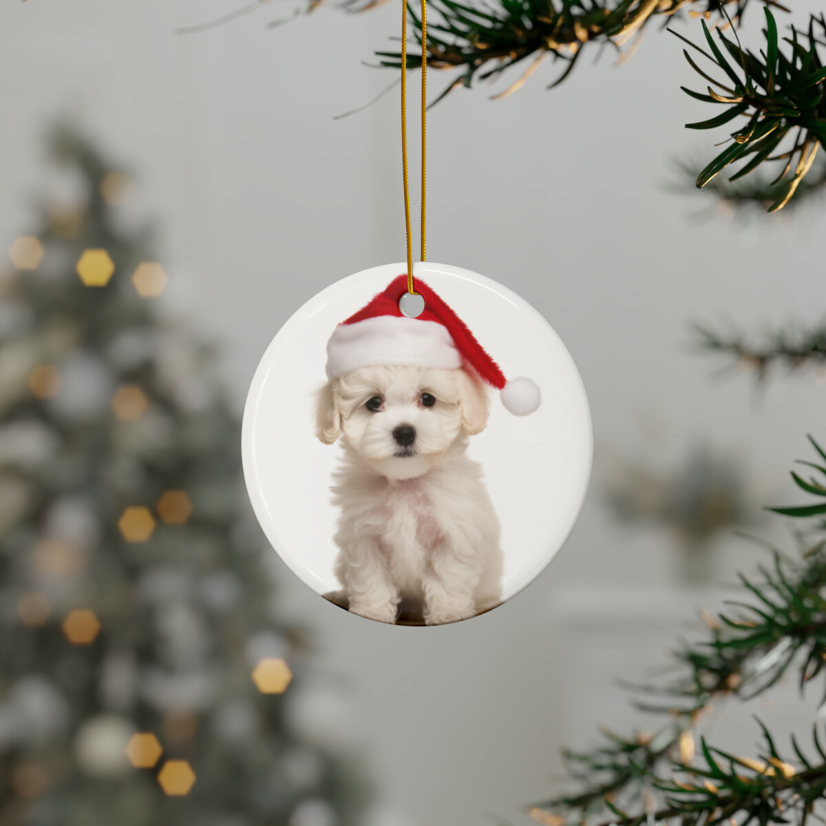 Hanging Ceramic Christmas Tree Ornament - Bichon Frise Puppy Design