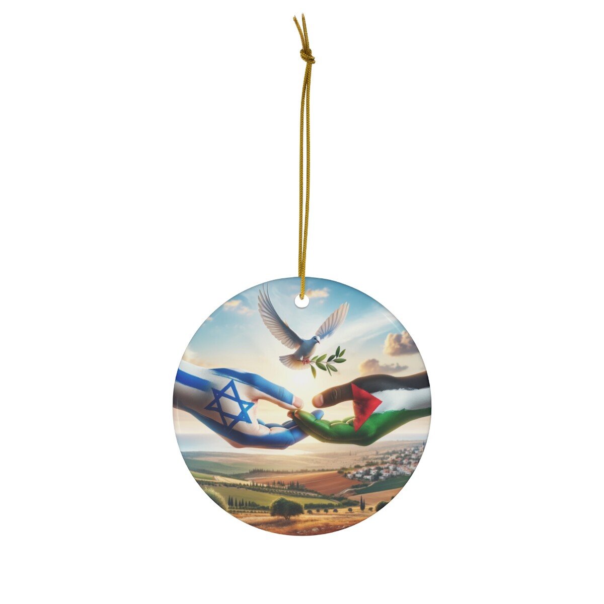 Hanging Ceramic Christmas Tree Ornament Charm - Hands of Peace