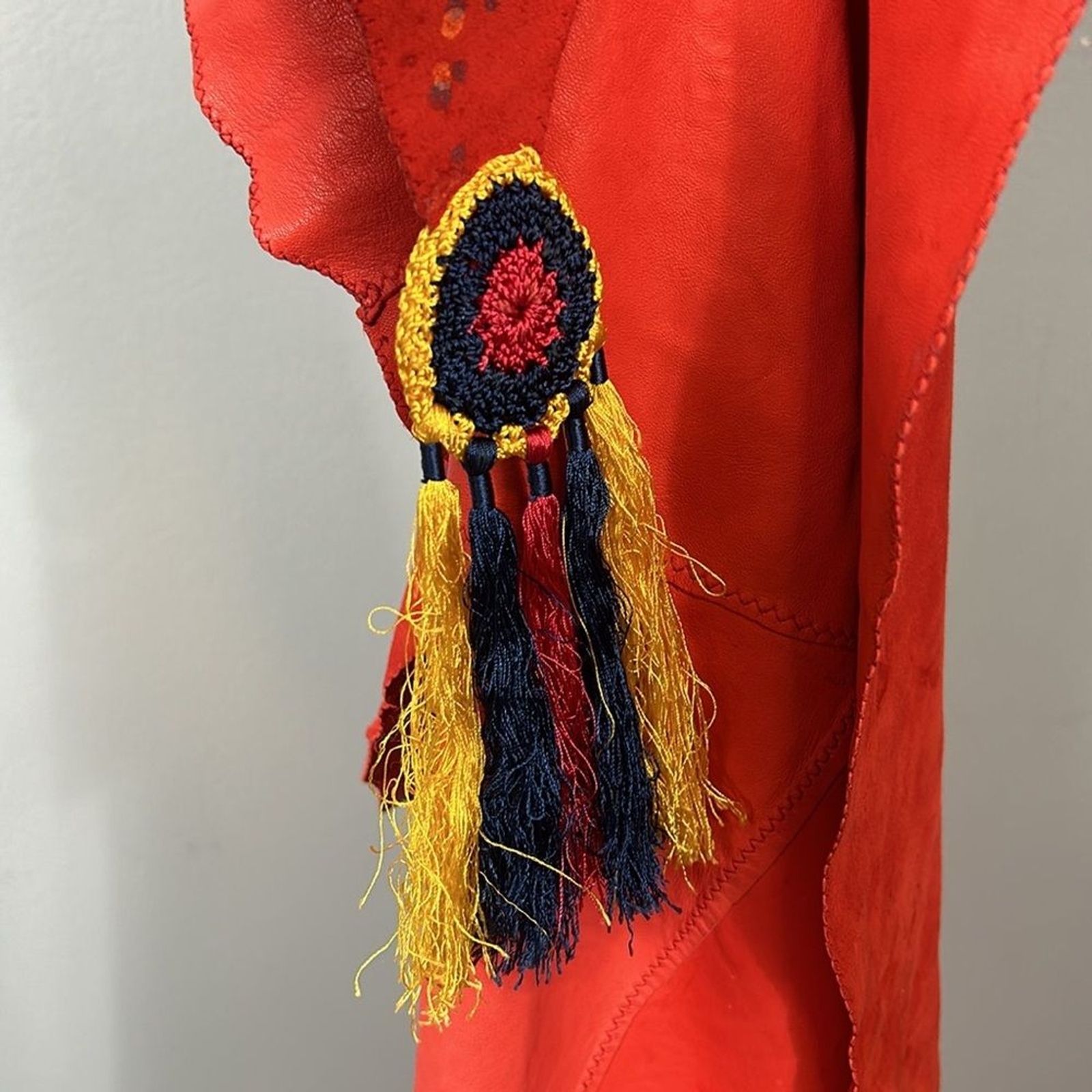 как выглядит Vintage western red suede leather hand painted shawl rare large фото