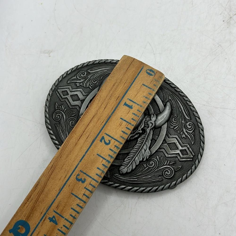 как выглядит Vintage Metal Western Skull Head Cowhead Feather Belt Buckle Cowboy Accessory фото