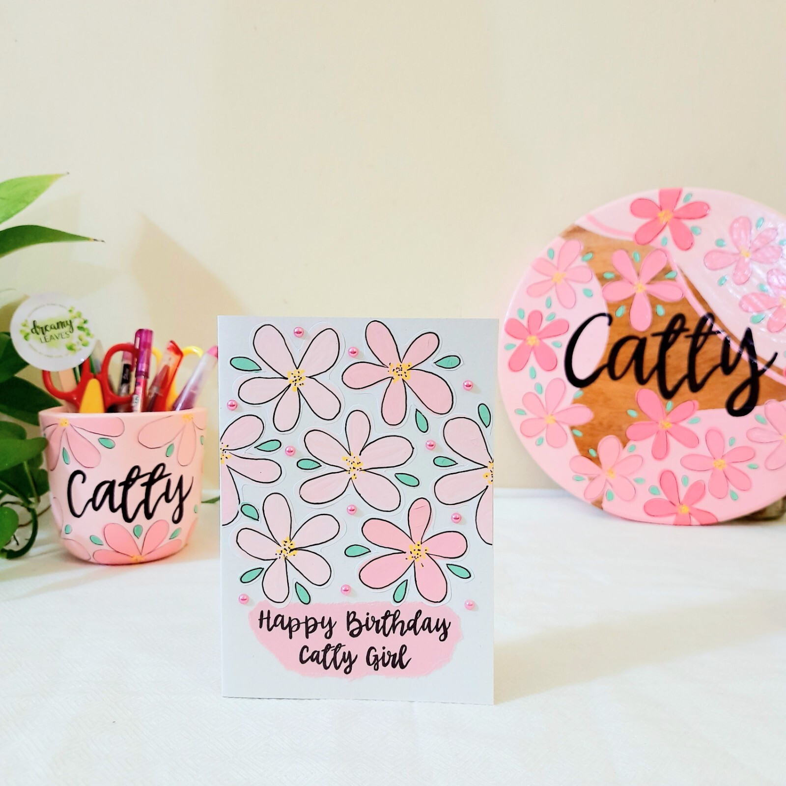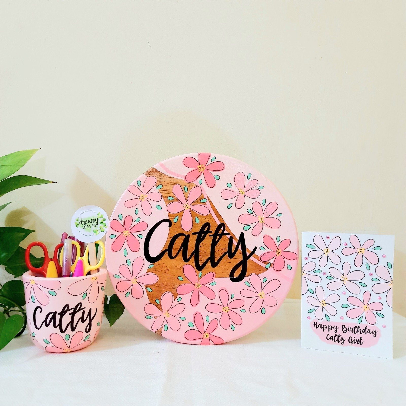 Customizable Gift Pack Hand-Painted Wooden Board, Pen Holder Handmade Card