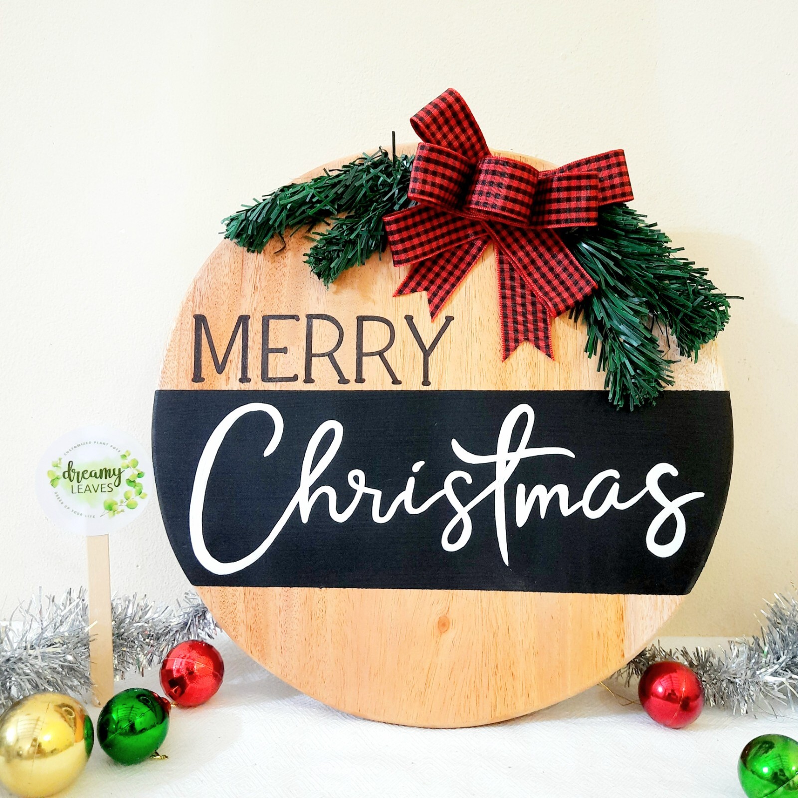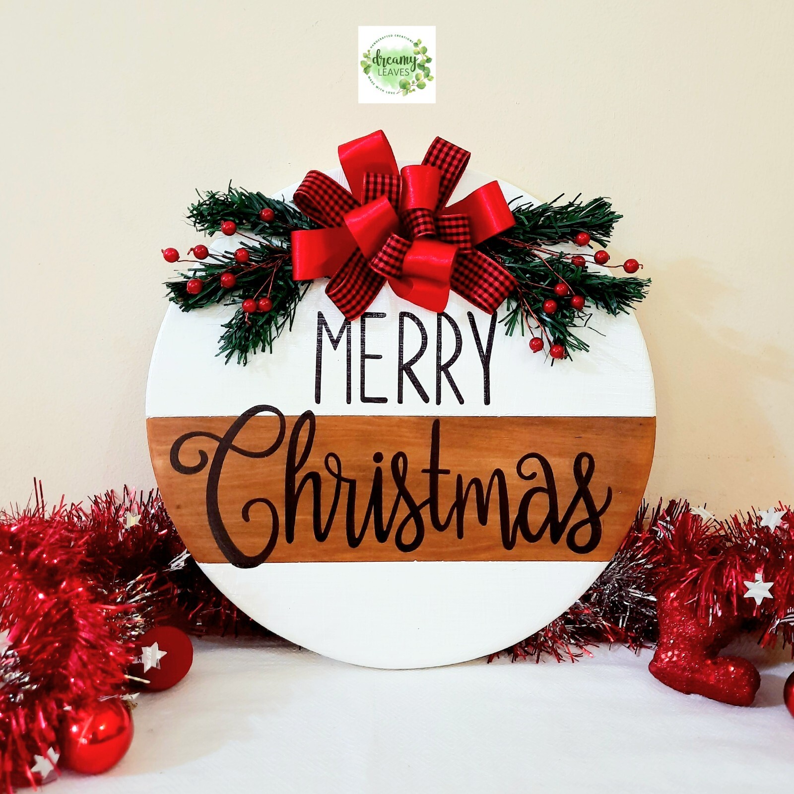 Merry Christmas Wooden Door Sign Handpainted Customizable Holiday Decor
